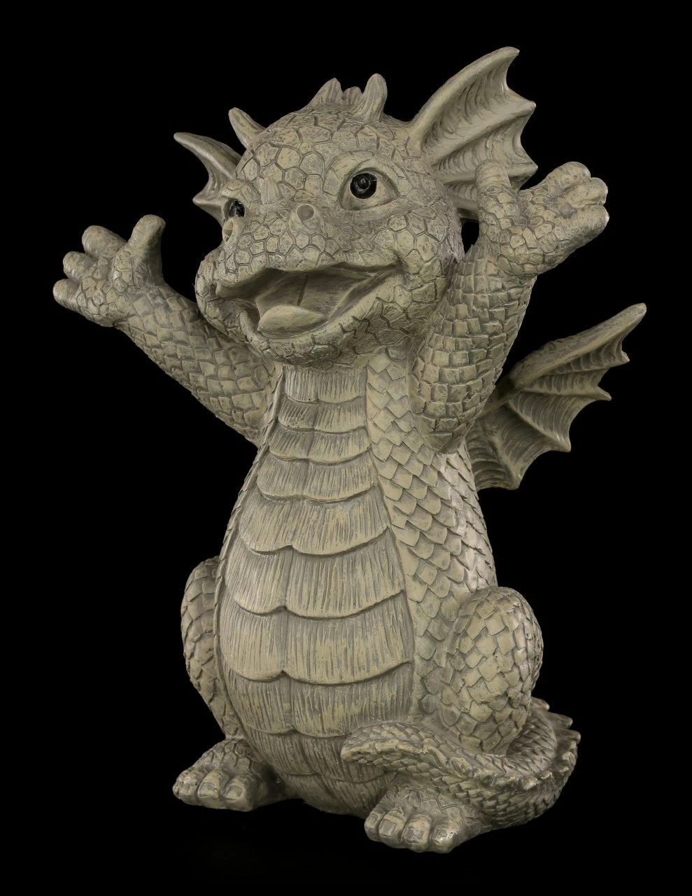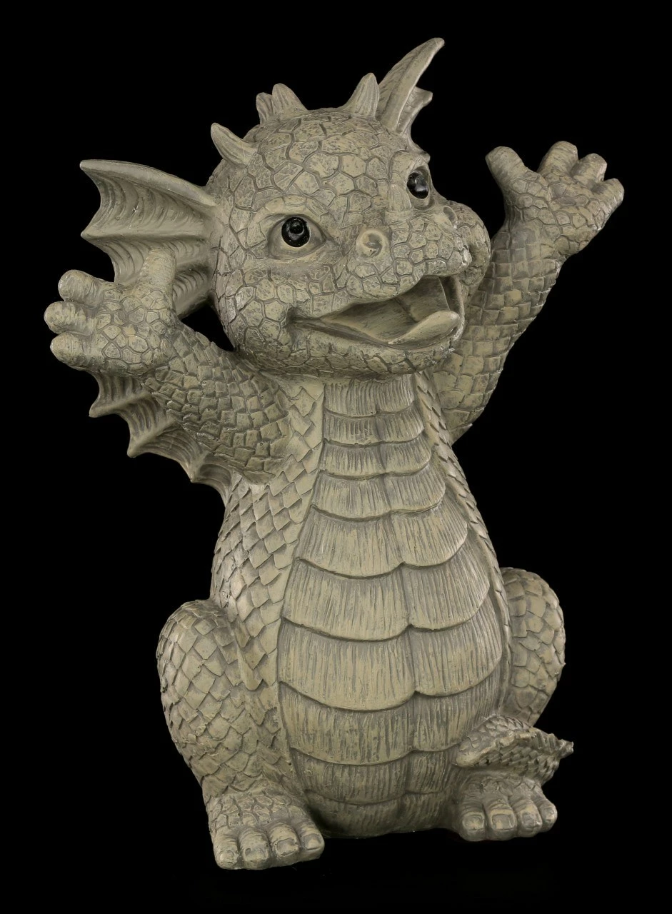 Der niedliche Drache begrüßt mit offenen Armen freudig alle neuen Gäste. Bei so einer Begrüßung fühlt sich doch jeder gleich Willkommen. Der kleine Drache ist aus liebevoll handbemaltem Kunststein (Polyresin) und wird sicher jedem Besucher ein Lächeln entlocken.