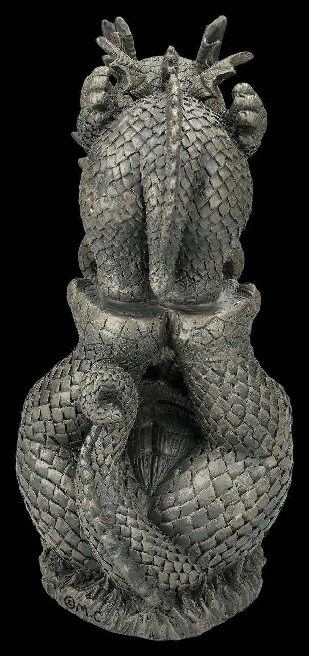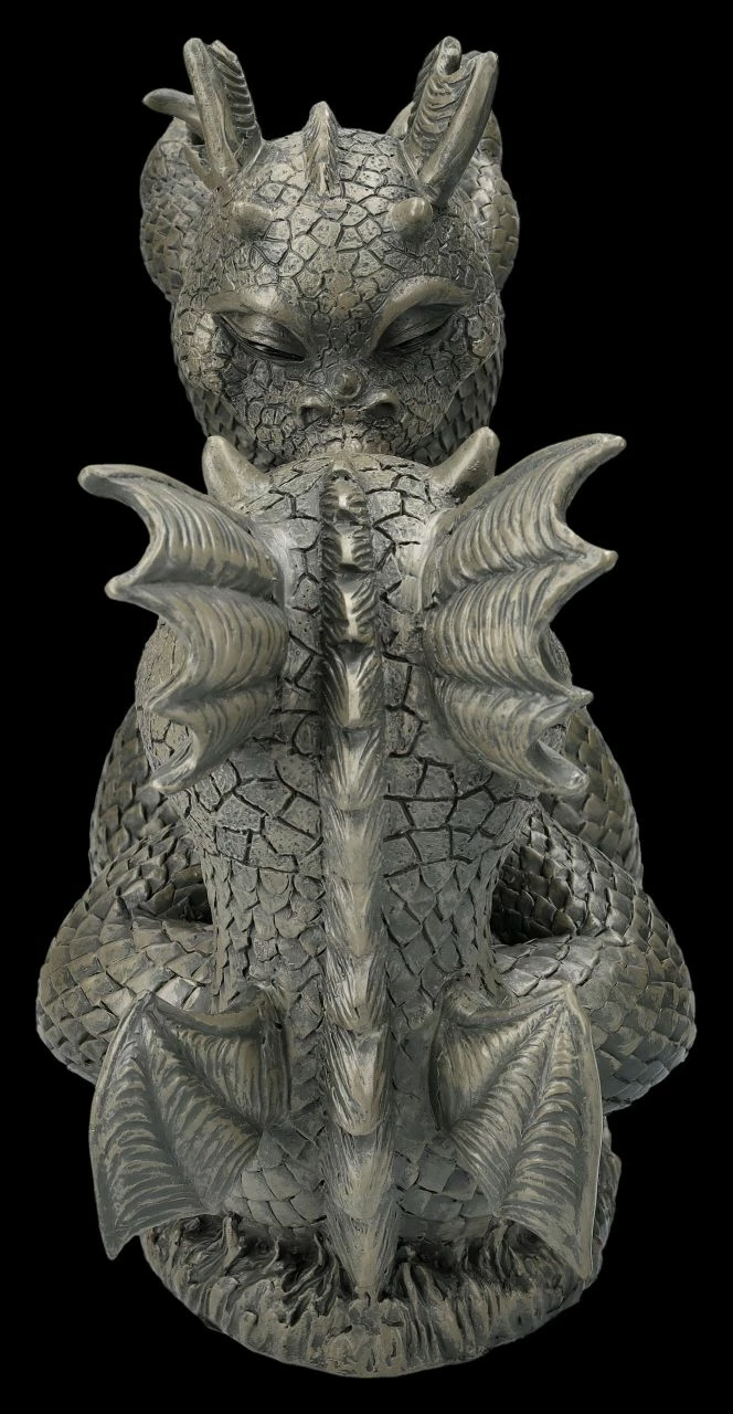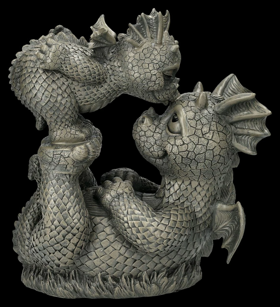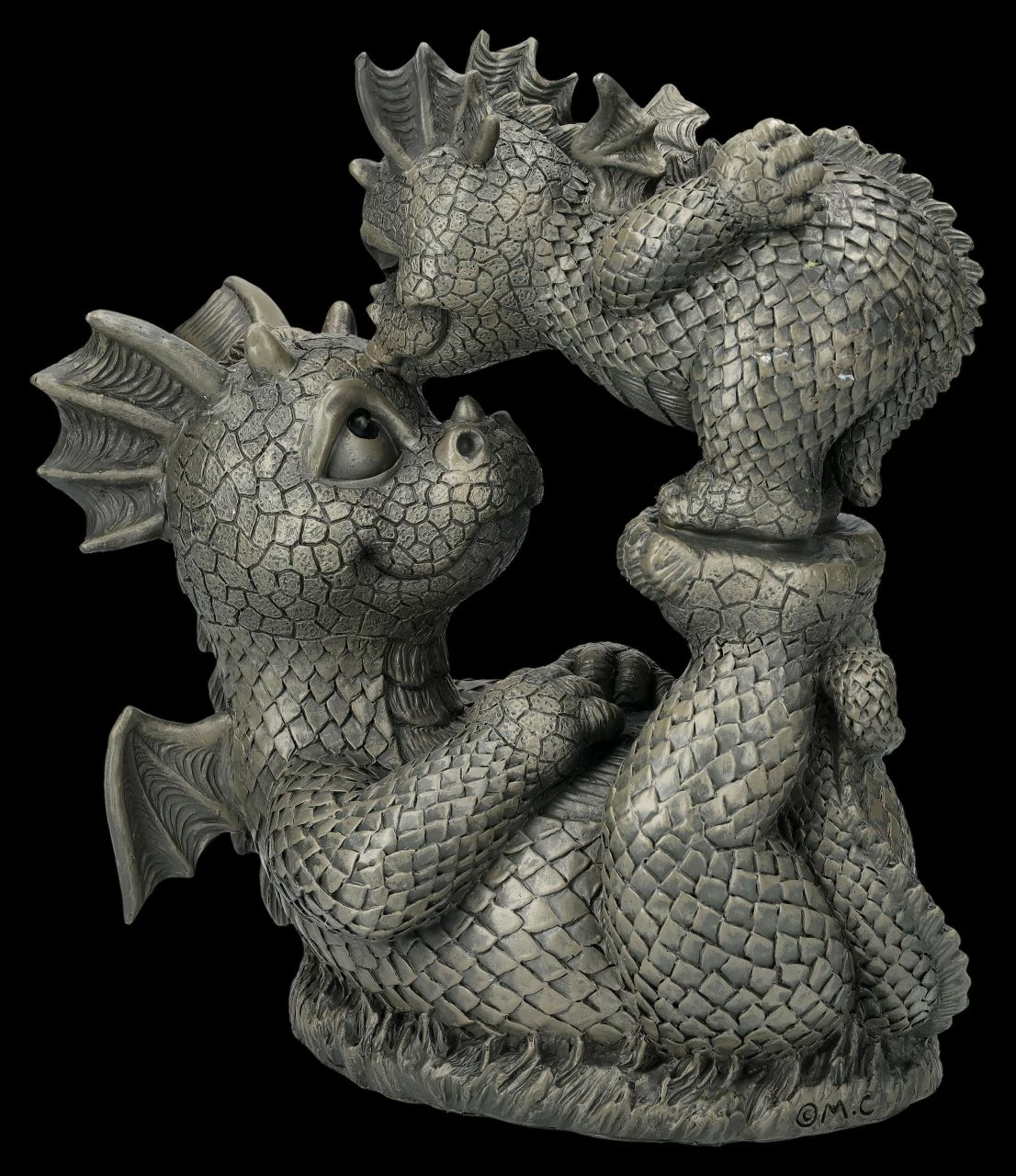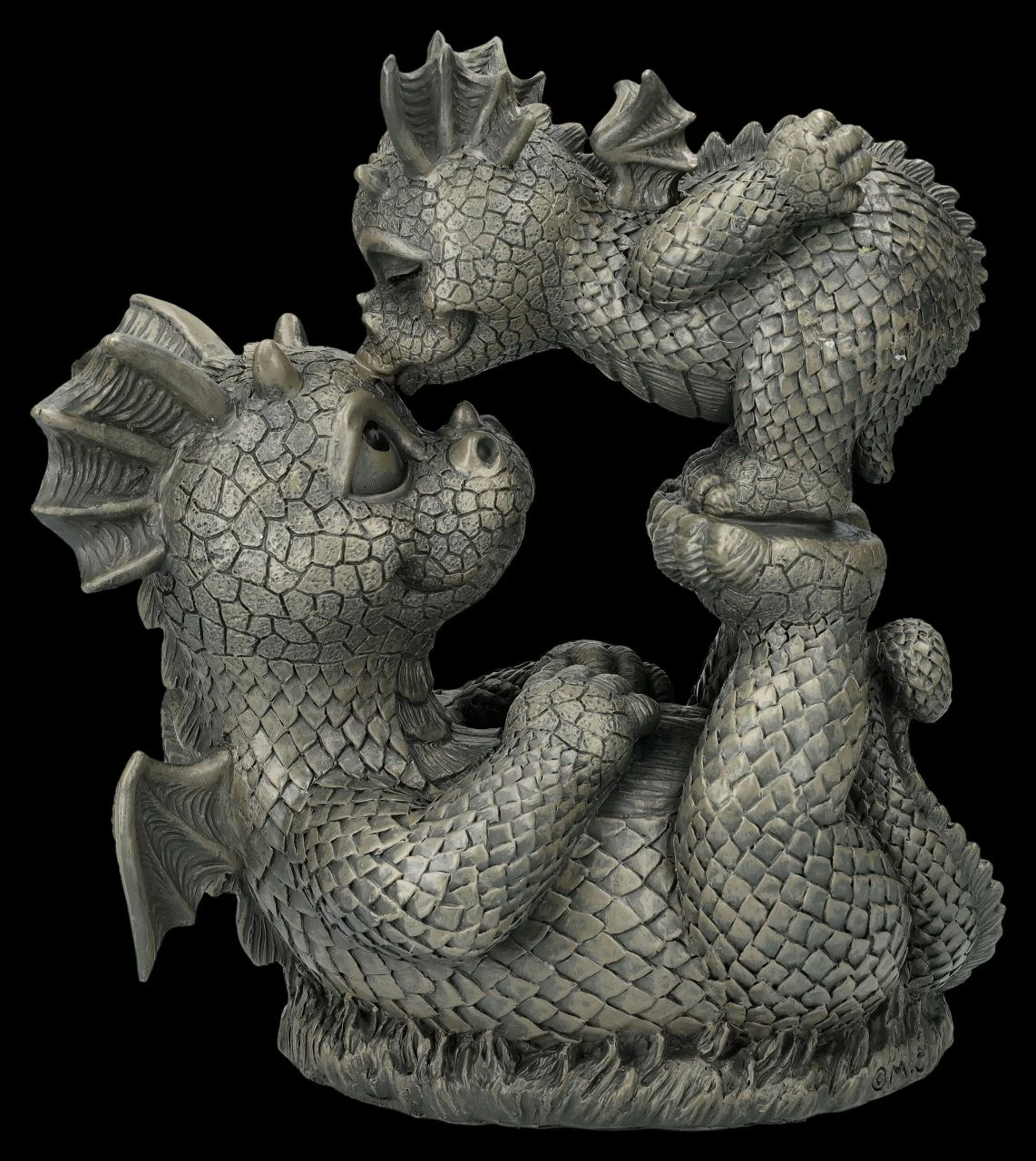 Das ist die absolute Liebe – Mommy und ihr Baby. Diese Gartenfigur mit der auf dem Rücken liegenden Drachen-Mamma, die begeistert mit ihrem Baby spielt, ist doch wirklich allerliebst. Das Baby steht auf den Füßen der Mamma und drückt ihr zärtlich ein Küsschen auf die Nase. Diese niedliche, 28 cm hohe, 25 cm breite und 15,5 cm tiefe Gartenfigur sollte unbedingt so aufgestellt werden, dass sie von jedem Besucher sofort entdeckt wird. Sie wurde aus hochwertigem Kunststein (Polyresin) detailreich gefertigt und von Hand bemalt. Die Drachen-Mommy mit ihrem Baby ist auch ein fantastisches und liebevolles Geschenk für Eltern und natürlich für alle Drachenfreunde.