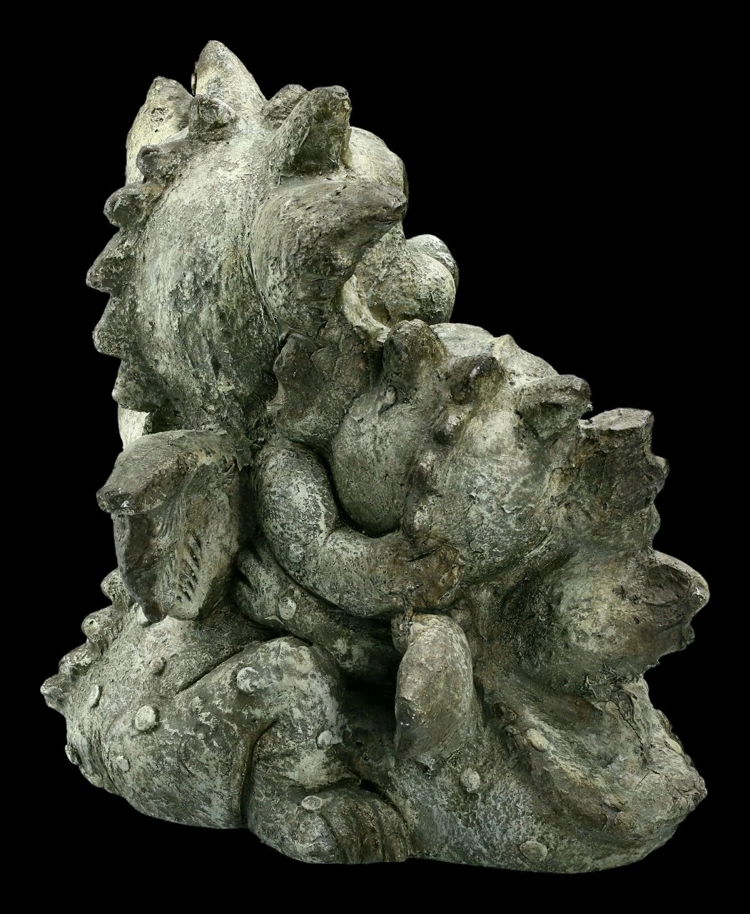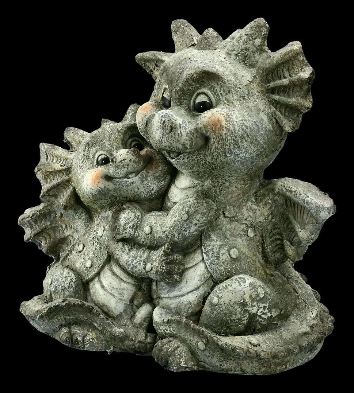 Wenn das nicht süß ist – glücklich lächelnd sitzen diese beiden Drachen in Ihrem Garten und schmiegen sich zärtlich aneinander. Die niedliche Gartendeko aus handbemaltem Kunststein (Polyresin) mit dem Drachen-Pärchen ist 35 cm hoch, 34 cm breit und 25 cm tief. Die beiden freuen sich auf einen schönen Platz in Ihrem Garten, sie sind aber natürlich auch ein besonders liebevolles Geschenk. Bitte beachten Sie unseren Hinweis zur Wetterbeständigkeit!