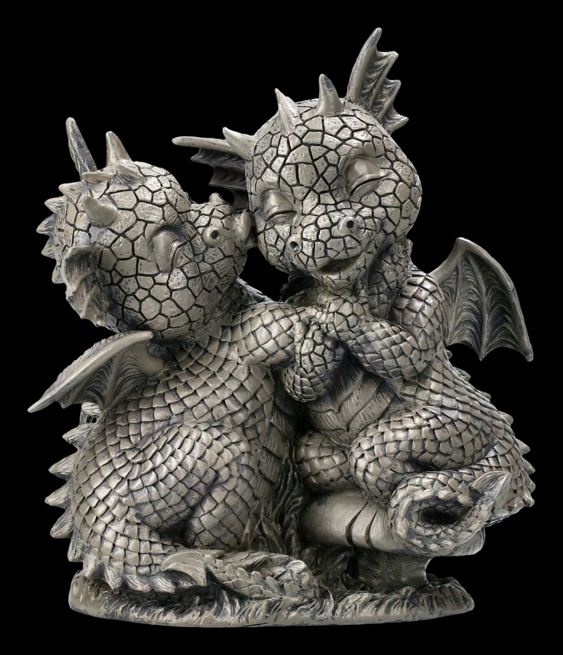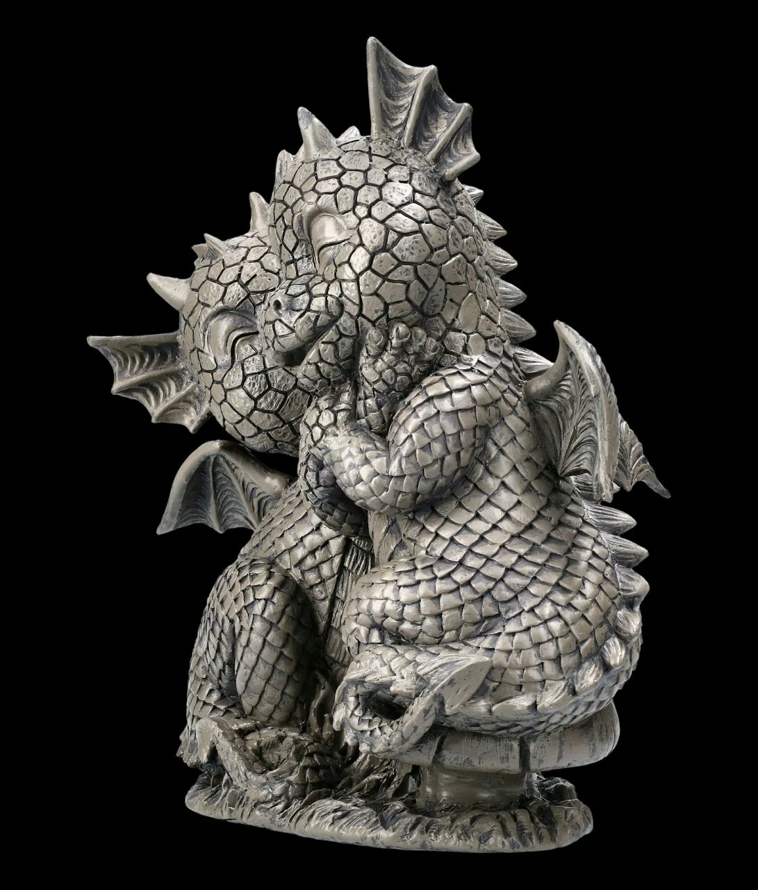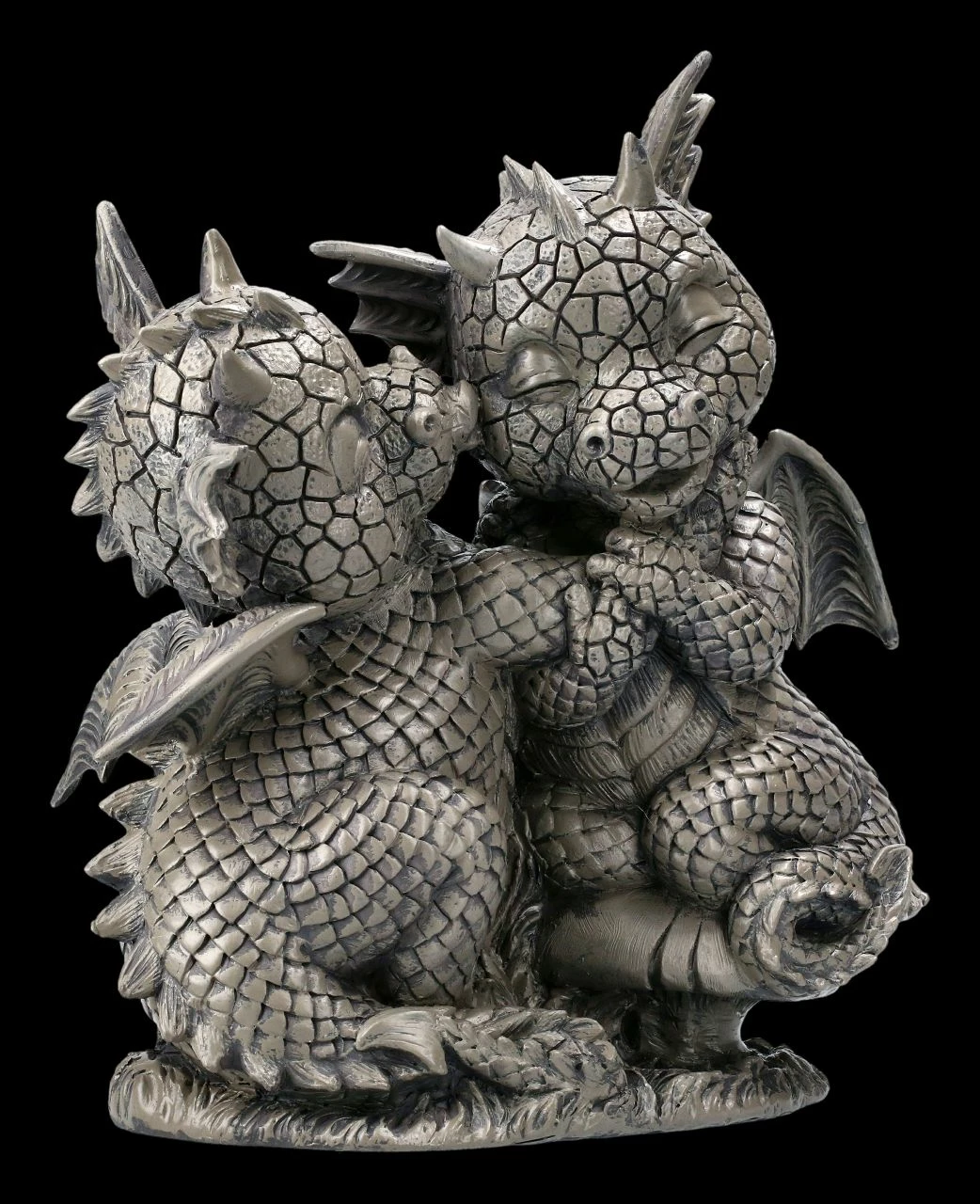 Da haben sich endlich die richtigen gefunden. Dieses süße Drachen Liebespaar ist in seiner liebevollen Umarmung der absolute Hingucker für jeden Eingangsbereich, im Garten, auf dem Balkon oder auf der Terrasse. Es ist sehr detailreich aus Kunststein (Polyresin) gefertigt und handbemalt. Das Küsschen tauschende Drachen-Liebespaar ist 28 cm hoch, 23 cm breit und 14 cm tief und ist sicher für alle Verliebten und nicht nur für Drachenfreunde auch ein tolles Geschenk.