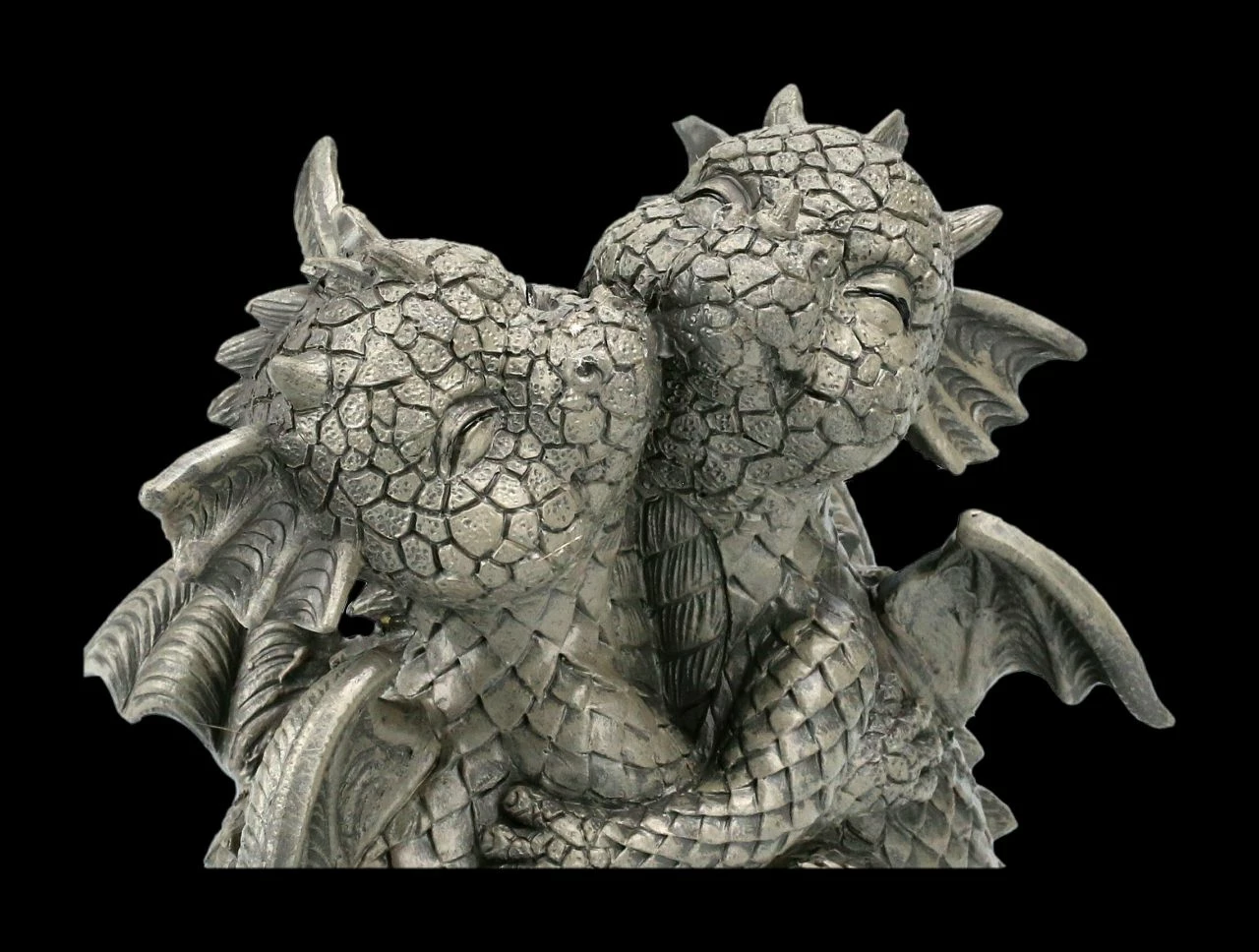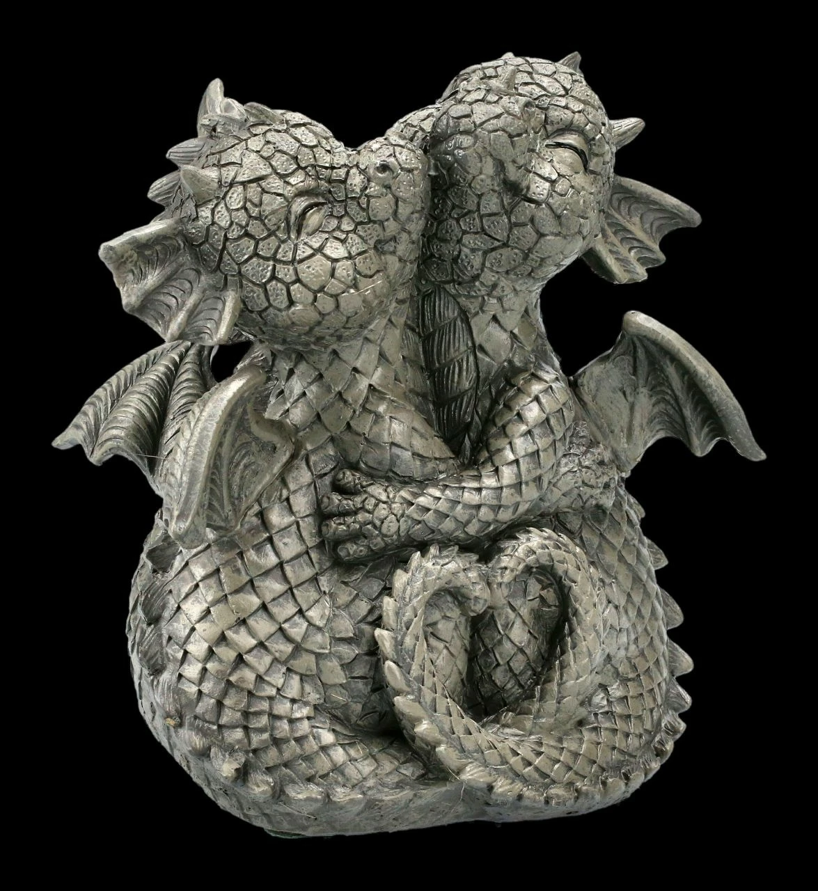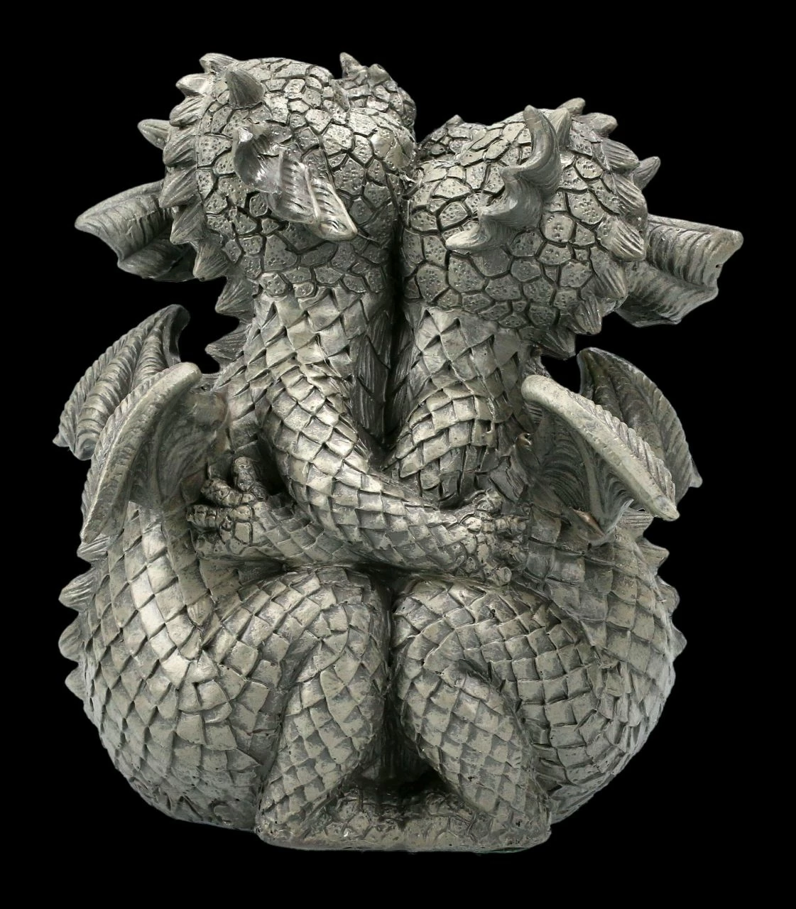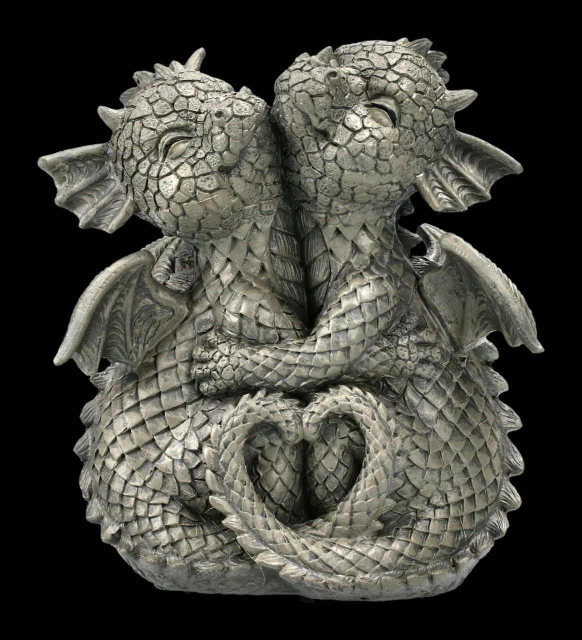 Kuscheln ist hier angesagt – liebevoll umarmen sich die beiden Drachen und sogar ihre Schwanzspitzen formen ein Herz. Die Loving Dragons sind liebevoll aus Kunststein (Polyresin) gefertigt und handbemalt. Mit einer Höhe von 12 cm, der Breite von 10 cm und der Tiefe von 6 cm ziehen sie in Ihrem Garten alle Blicke auf sich und sind auch ein tolles Geschenk für liebe Gartenfreunde.