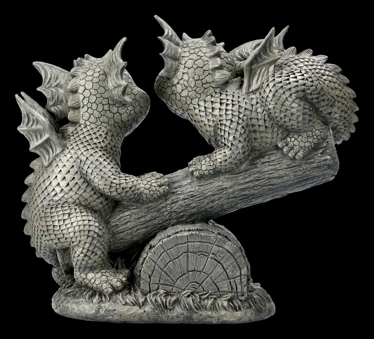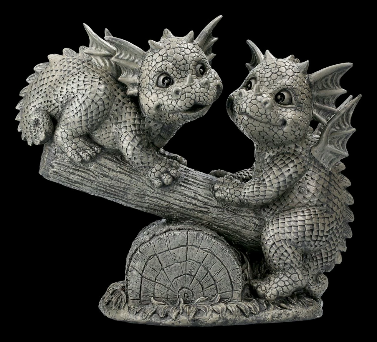 Die beiden süßen Drachen auf der Wippe scheinen richtig Spaß zu haben. Sie sind sehr detailreich aus Kunststein (Polyresin) gefertigt und handbemalt. Die lustigen Drachen auf der Wippe sind 30 cm hoch, 35 cm breit und 16 cm tief und finden in jedem Garten, auf dem Balkon oder der Terrasse sicher ein passendes Plätzchen, von wo aus sie alle Ihre Besucher zum Lachen bringen können. Diese lustigen Drachen auf der Wippe sind sicher nicht nur für Drachenfreunde ein tolles Geschenk.
