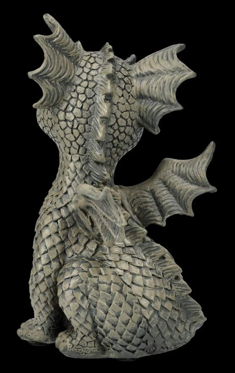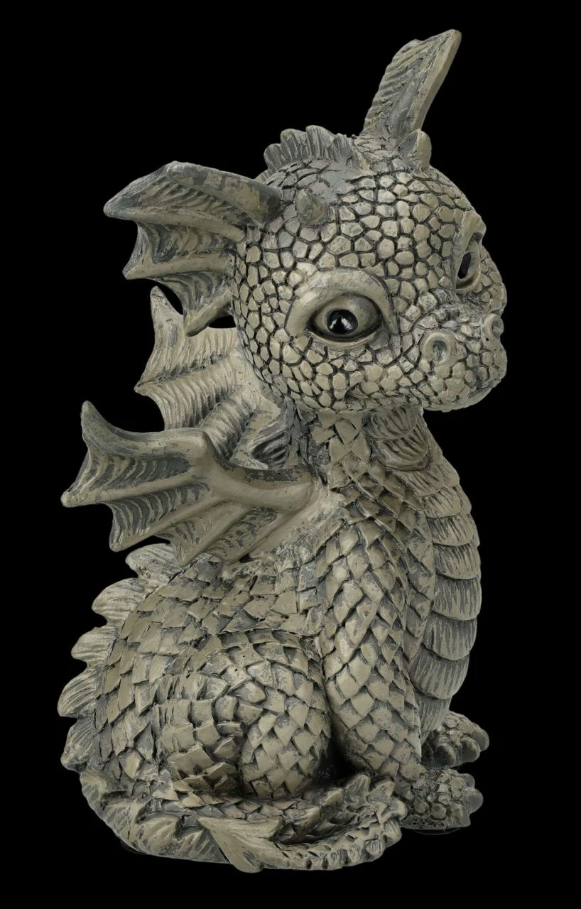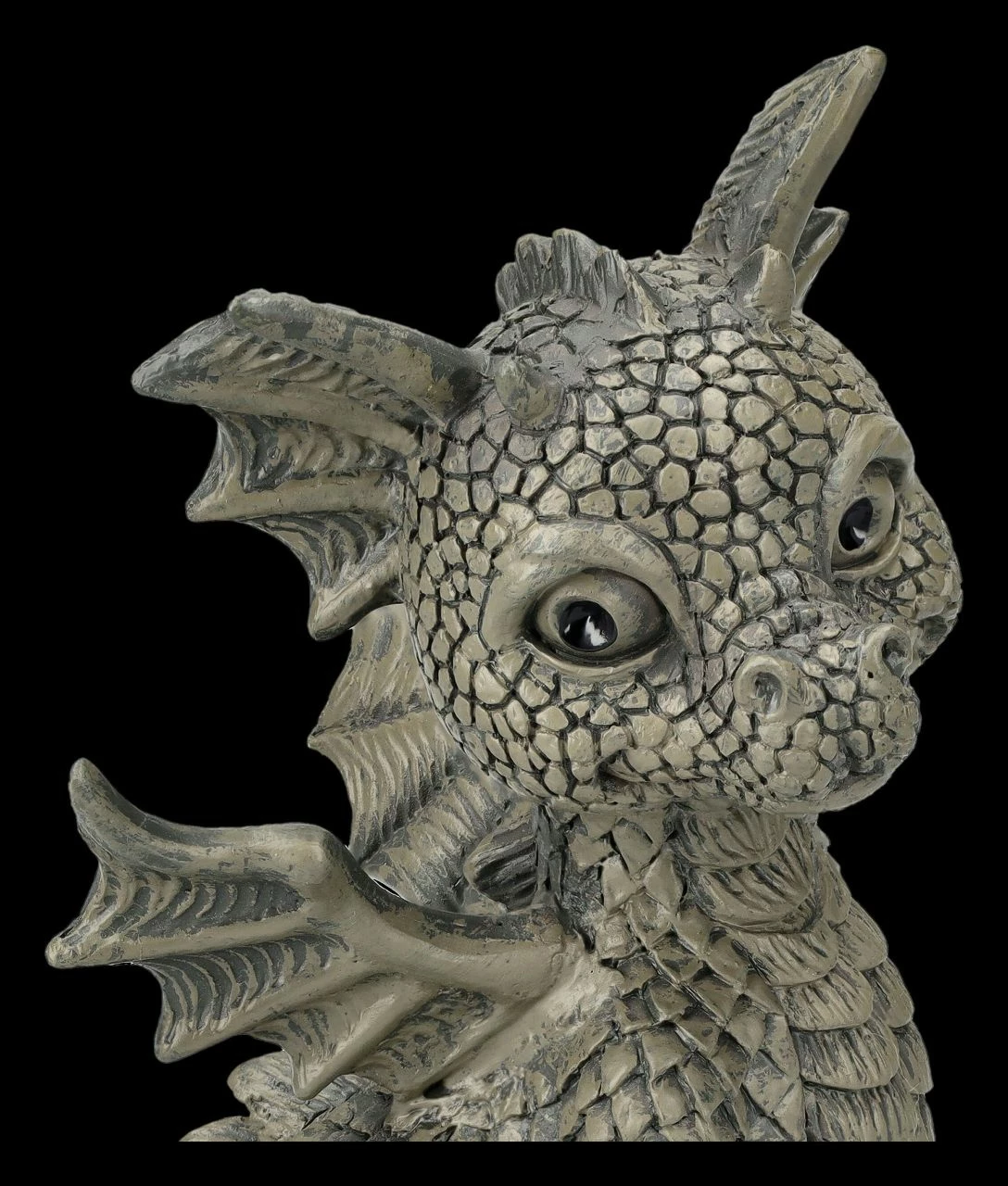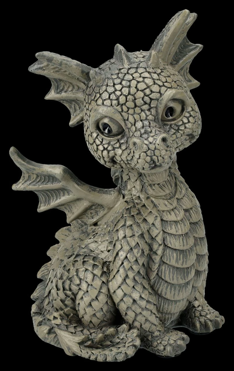 Ist dieser kleine, schelmisch lächelnde Drache nicht einfach putzig? Der 13,5 cm hohe, 8 cm breite und 8 cm tiefe kleine Drache ist detailreich aus liebevoll handbemaltem Kunststein (Polyresin) gefertigt. Auf dem Balkon, der Terrasse oder im Garten wird er sicherlich zum sofortigen Blickfang. Der niedliche- kleine Drache ist damit auch ein perfektes Geschenk für liebe Freunde.