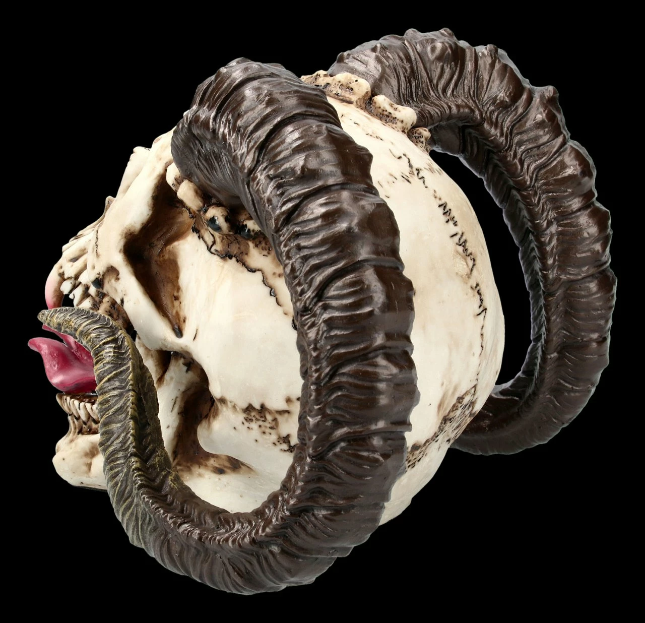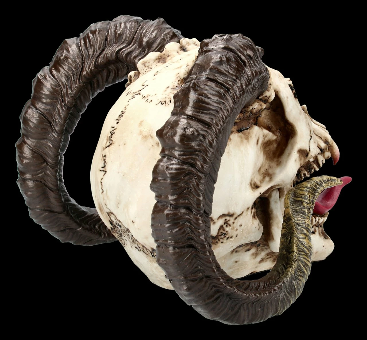 Totenkopf mit Widderhörnern vom Fantasy-Künstler Monte M. Moore