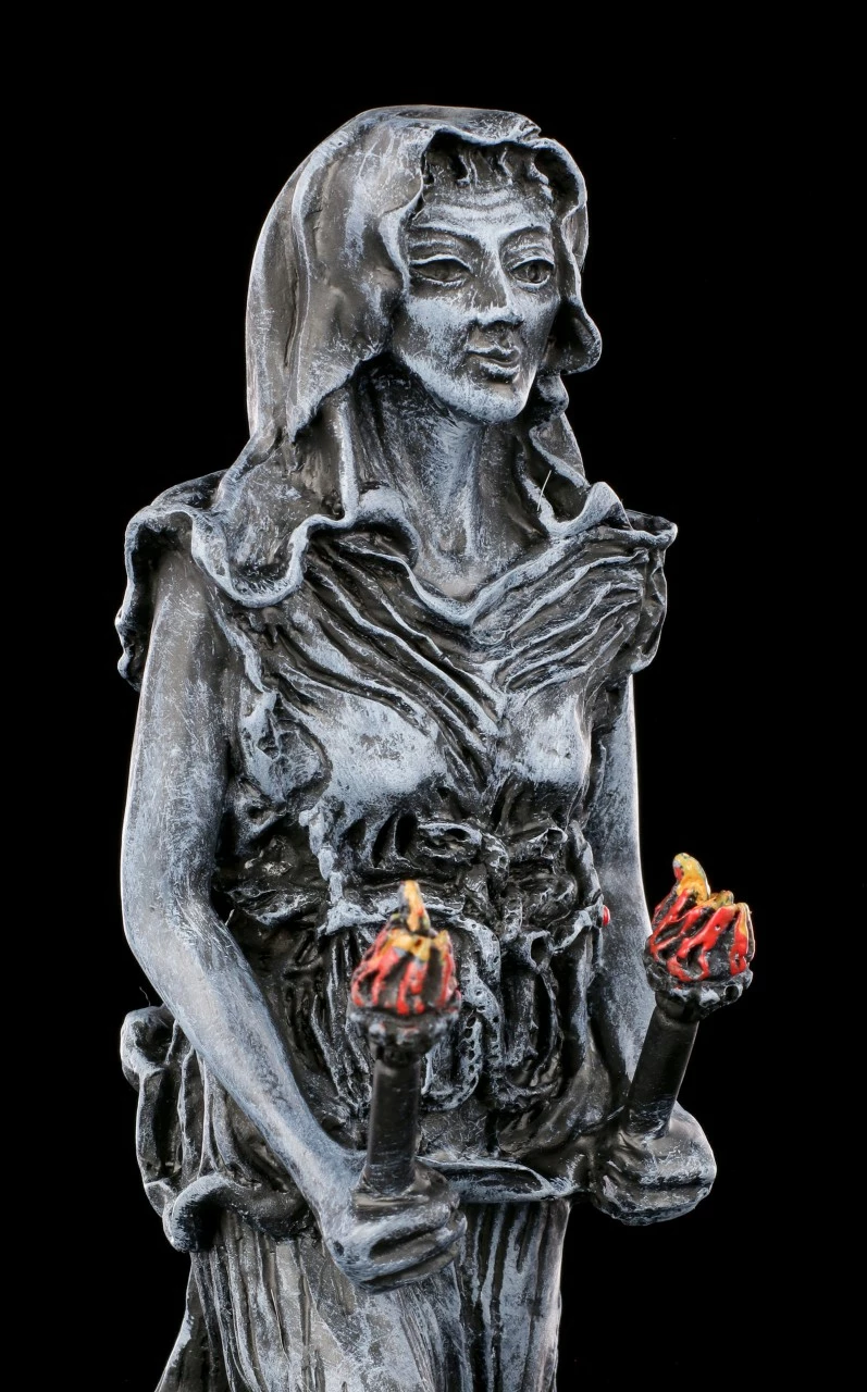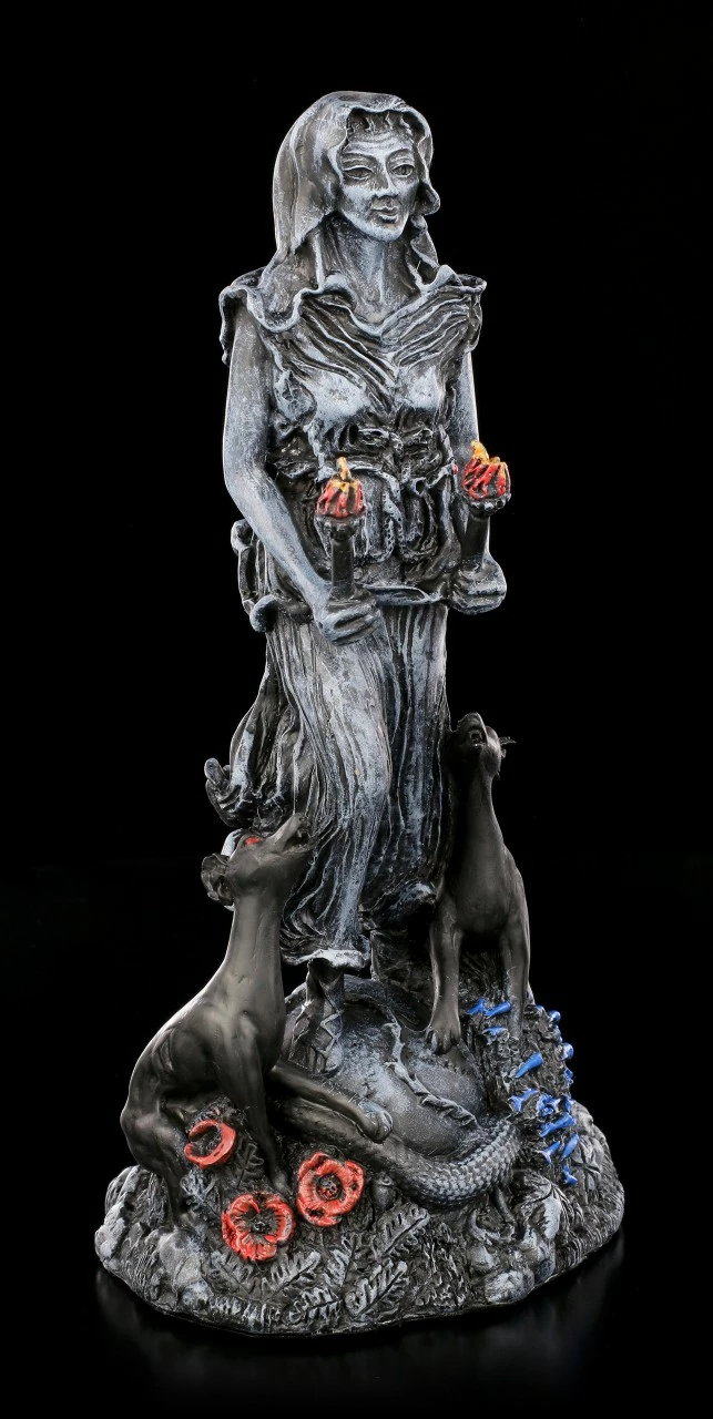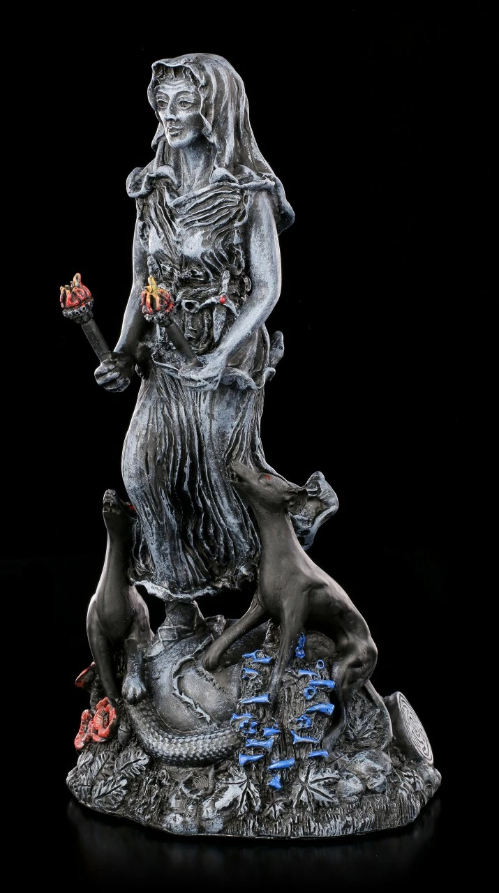 Hekate gilt in der griechischen Mythologie als Göttin der Magie, der Theurgie und der Nekromantie. Ebenso ist sie die Göttin der Wegkreuzungen, Schwellen und Übergänge und die Wächterin der Tore zwischen den Welten. Die Göttin Hekate wird oft mit Tieren der Unterwelt, wie Hunden, in Verbindung gebracht. Fackeln gelten als ihr Attribut.
