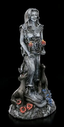 Schwarze Hekate Figur mit Hunden