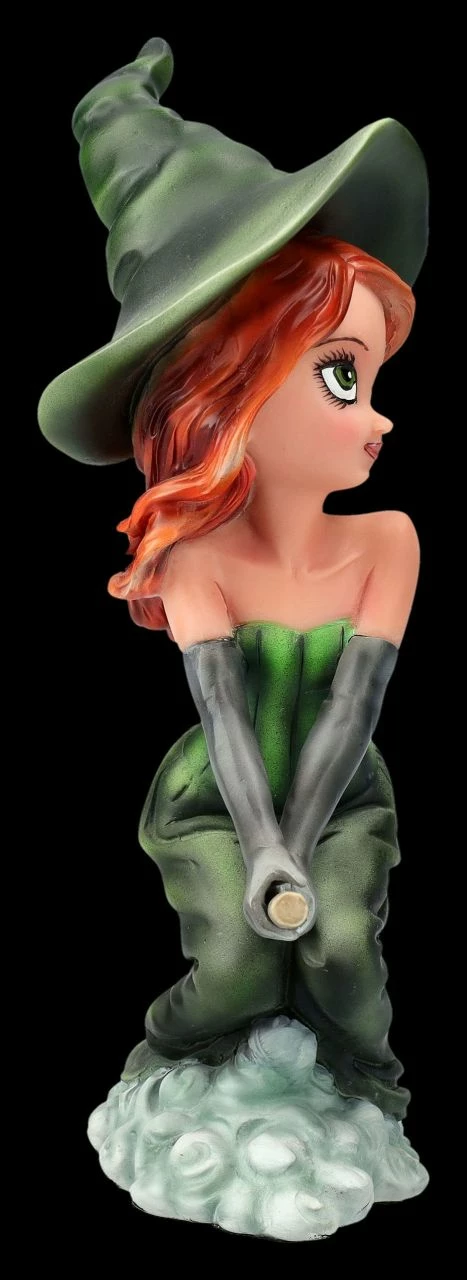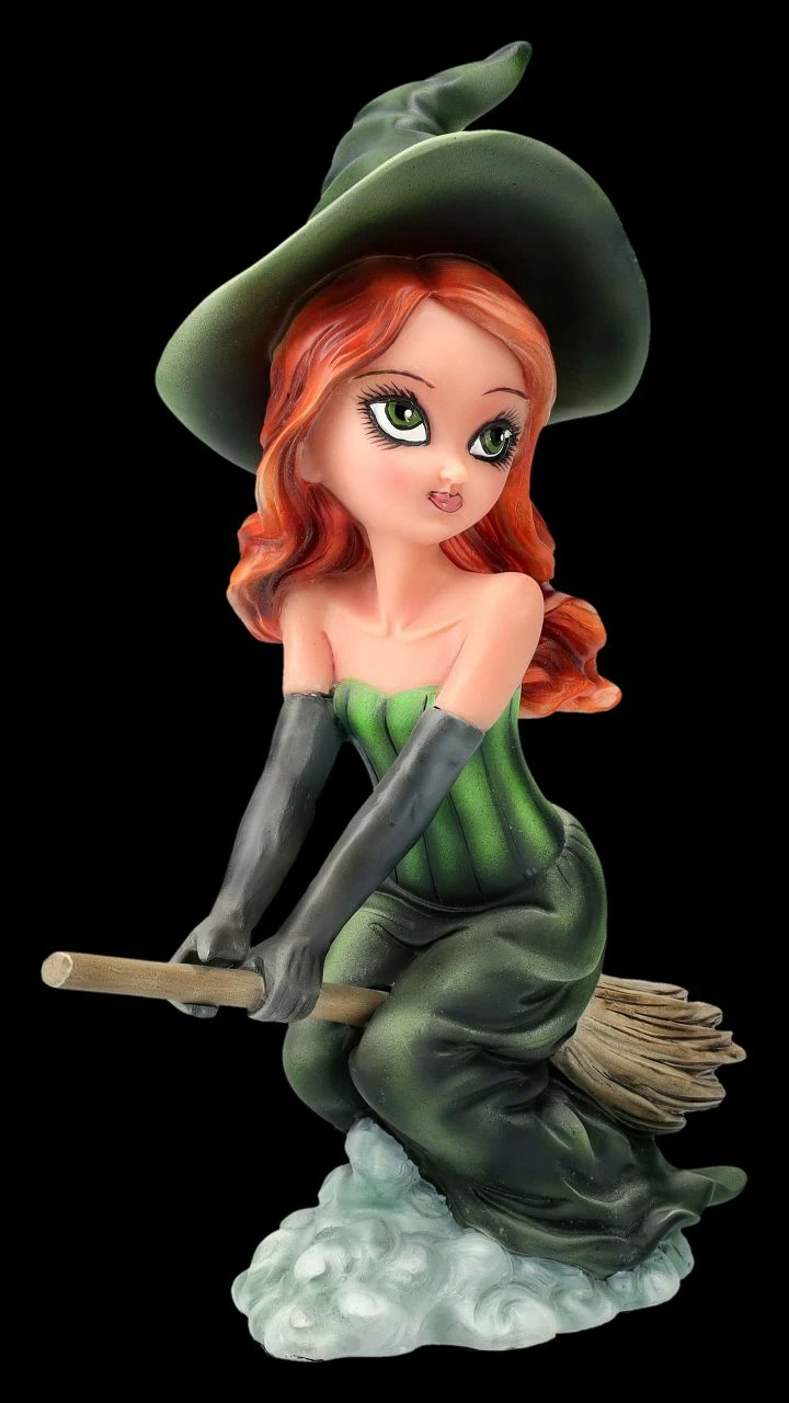 Während ihre Schwestern entweder lernen, oder sich am Trank im Hexenkessel versuchen, schnappt sich die kleine Hexe Willow ihren Besen, klappert unschuldig mit den großen Augen und fliegt mal eine Runde über den Wolken. Ihre Schwestern und Freundinnen werden sie nicht nur für ihr Können bewundern, in ihrem grünen Outfit schaut sie aber auch zu niedlich aus… Die 17 cm hohe, 13 cm breite und 6,5 cm tiefe Hexe Willow auf dem Besen ist detailreich aus Kunststein (Polyresin) gefertigt und liebevoll von Hand bemalt. Die bezaubernde Hexe ist – vielleicht auch gleich mit ihren Hexenschwestern aus unserem Shop – auch ein wunderbares Geschenk..