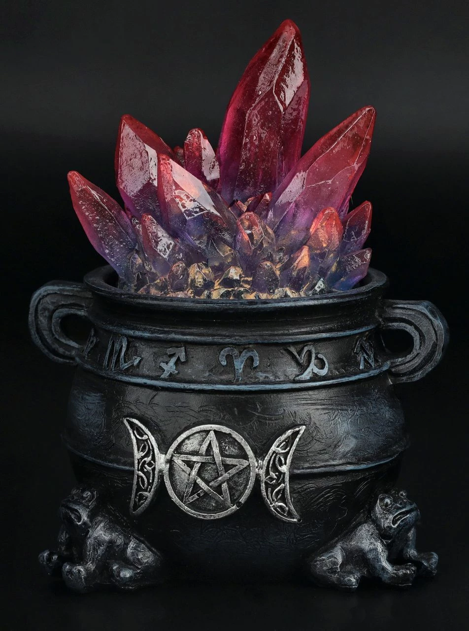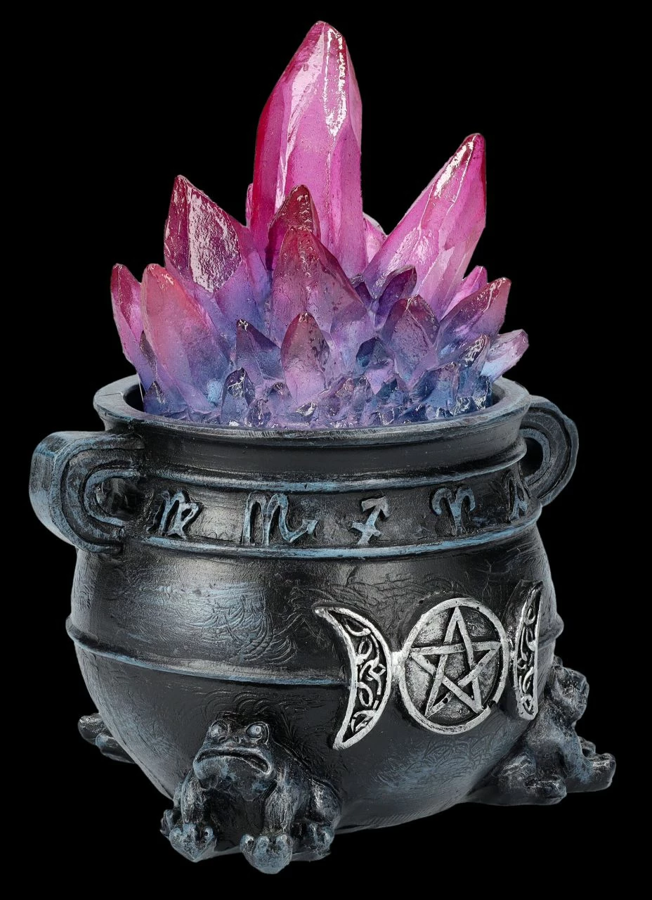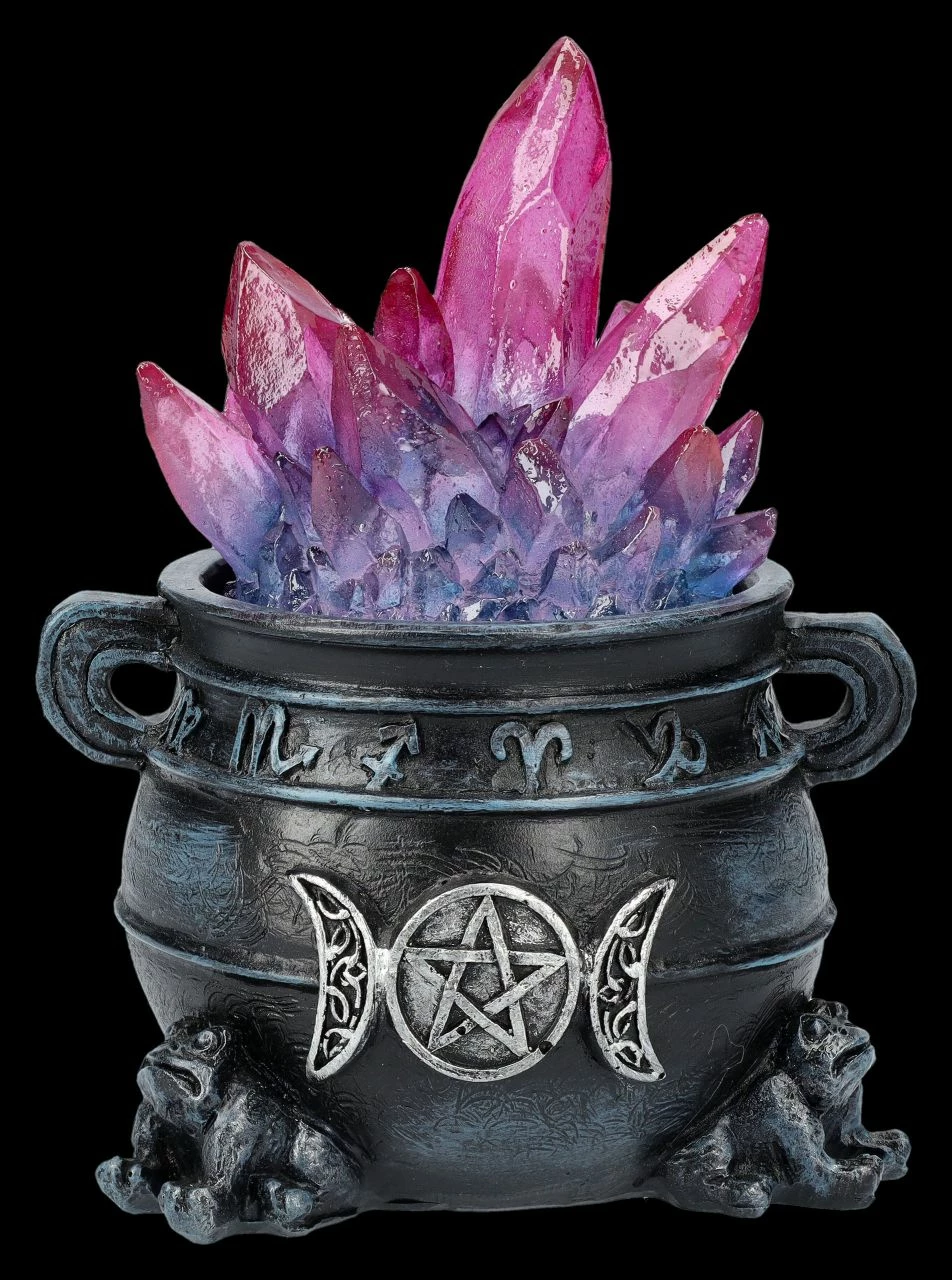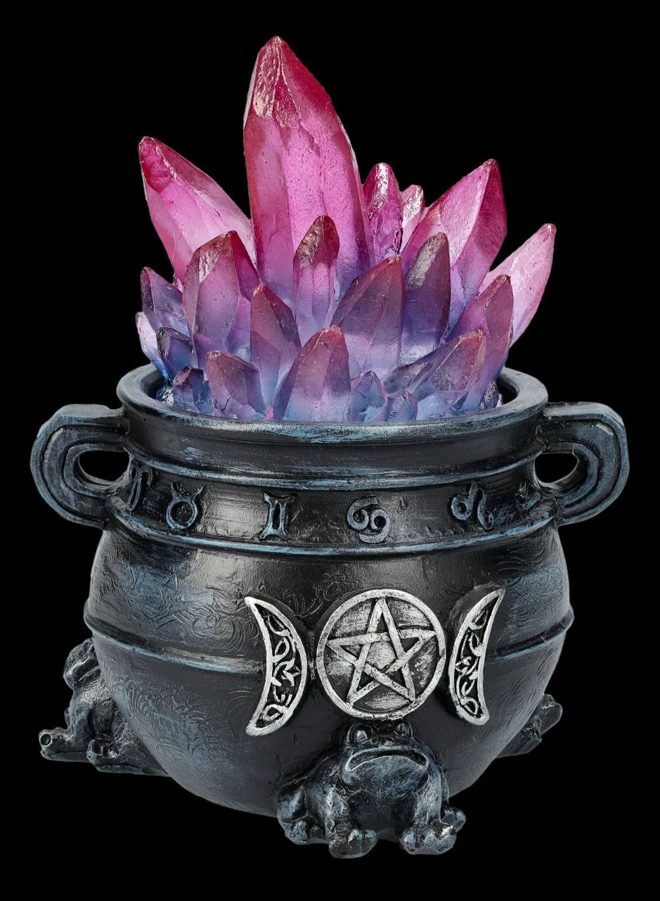 Mystische Atmosphäre: Hexenkessel mit Kristallverzierungen