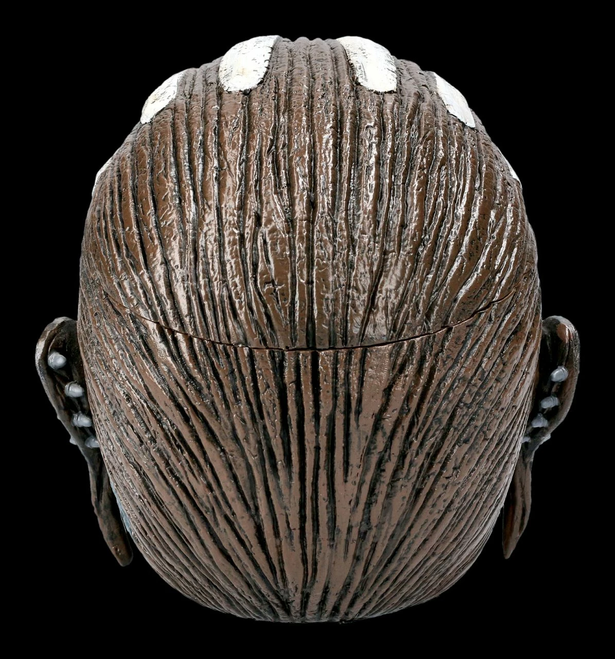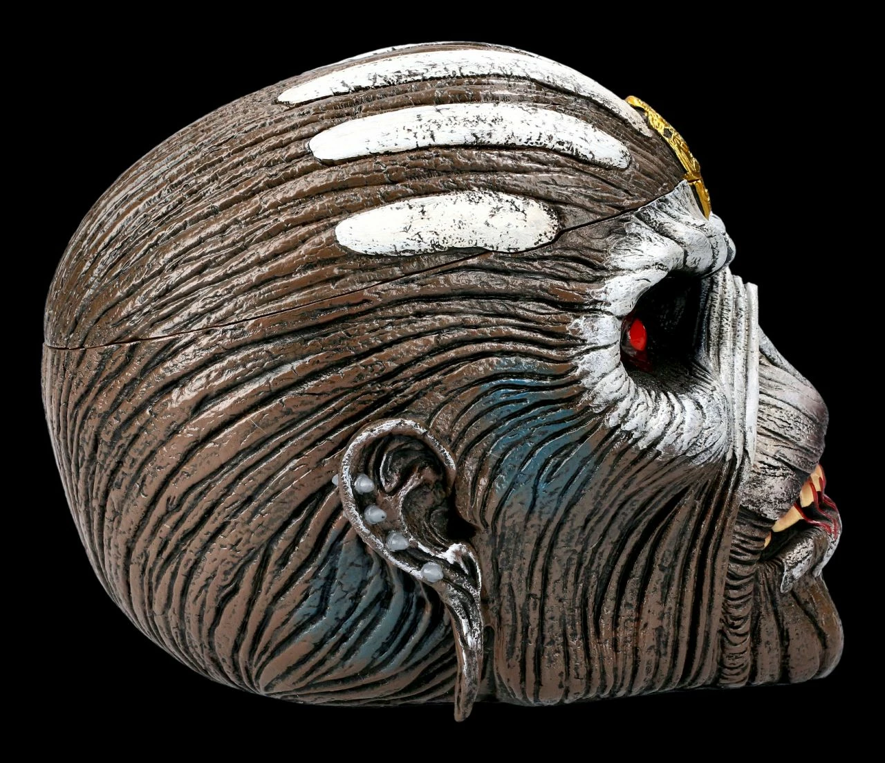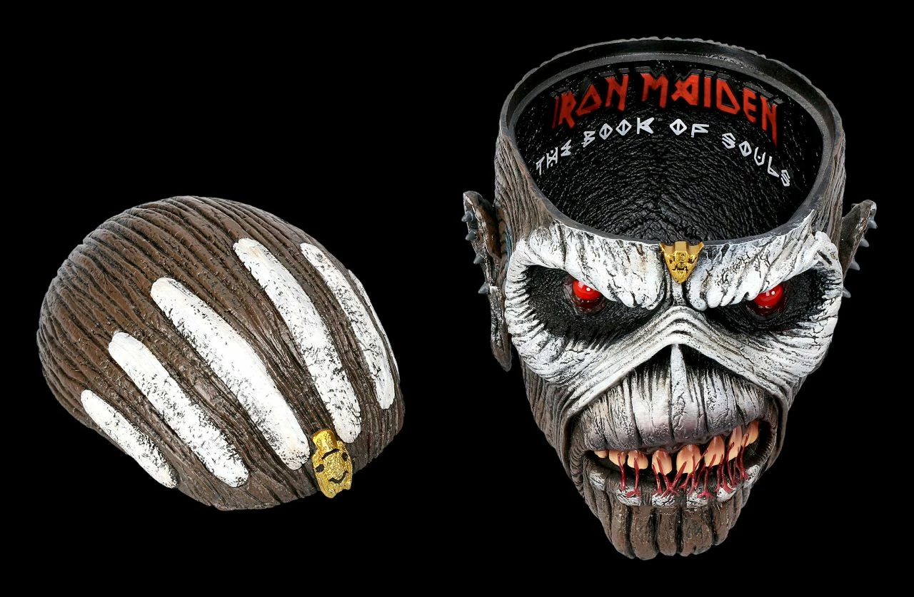 Iron Maidens ikonisches Maskottchen Eddie als Schatulle – wie cool ist das denn. Von dieser tollen Zombie Schatulle „Eddie Book of Souls“ werden alle Fans begeistert sein. Sie ist außerordentlich detailreich aus Kunststein (Polyresin) gefertigt und sorgfältig von Hand bemalt. Der Zombie Schädel ist 14 cm hoch, 15 cm breit und 18,5 cm tief. Wenn man die Schädeldecke abhebt, entdeckt man die Schatulle mit den Innenmaßen von H: 8 cm / B: 10 cm / T: 12 cm. Eddie Book of Souls ist mit Sicherheit auch ein perfektes Geschenk für alle Iron Maiden Fans und wird inklusive eines toll bedruckten Geschenkkartons verschickt.