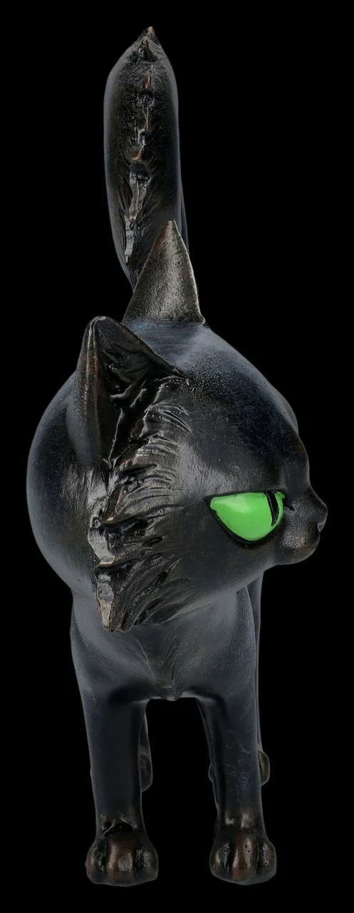 Hell Kitty ist aufgeregt – da hat sich ein fremder Kater wohl einfach mutig in ihr Revier gewagt. Aber nicht mit ihr, denn sie wählt ihre Partner aus! Buckel zeigen, Krallen raus und dann soll sich nur jemand trauen, sich ihr zu nähern. Die unzähmbare schwarze Katze aus der Hölle mit den leuchtend grünen Augen ist 21,5 cm hoch, 19 cm breit und 7 cm tief und aus handbemaltem Kunststein (Polyresin) gefertigt. Hell Kitty ist ein echter Blickfang und ein witziges Geschenk für alle, die sich über freche Katzen freuen und sie nicht fürchten.