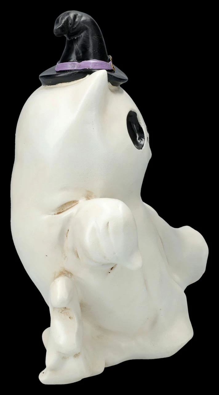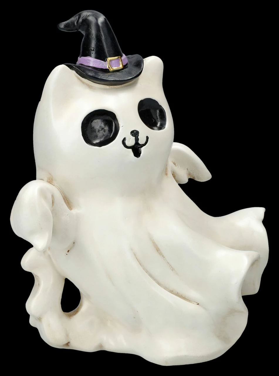 Huiii huuu – wer fürchtet sich vor mir? Nun, wer sagt denn, dass man nur zur Geisterstunde Leute erschrecken darf – das ist doch eine gute Frage der lustigen ‚Spookitty‘. Die 17,5 cm hohe, 13,5 cm breite und 8,5 cm tiefe witzige Katze im Geister-Kostüm ist ein richtig lustiges Geschenk. Sie ist aus liebevoll handbemaltem Kunststein (Polyresin) und bringt jeden zum Schmunzeln.