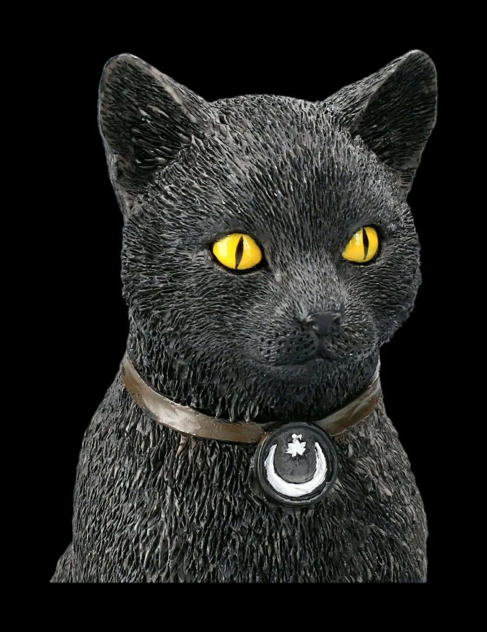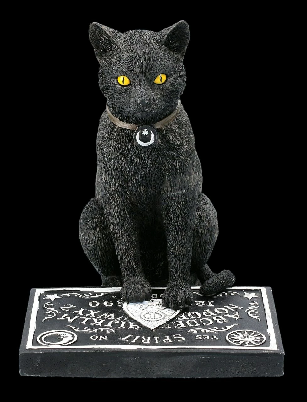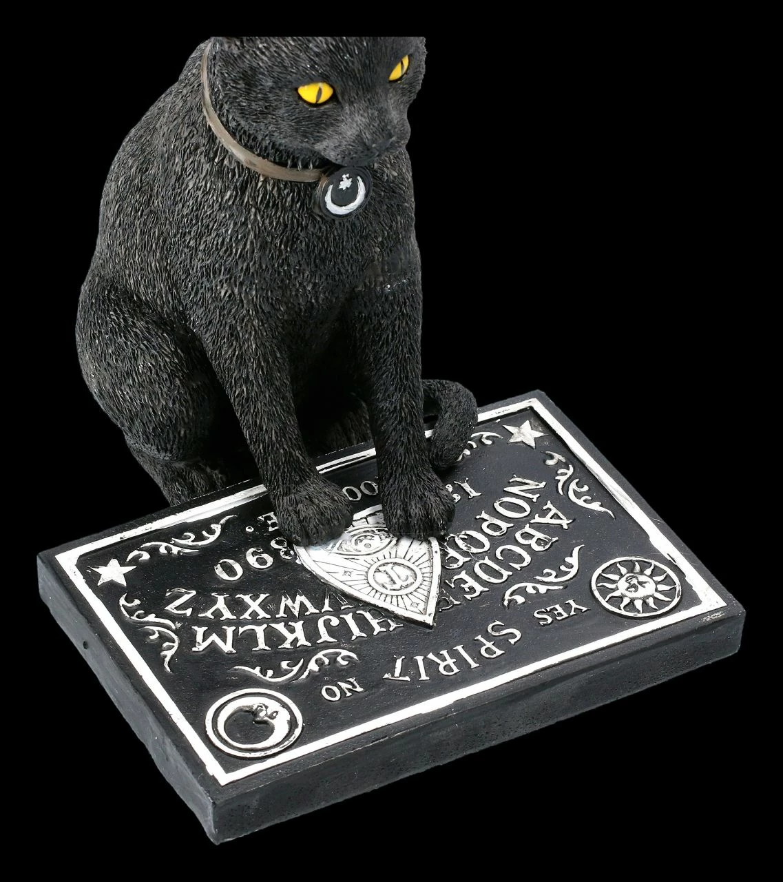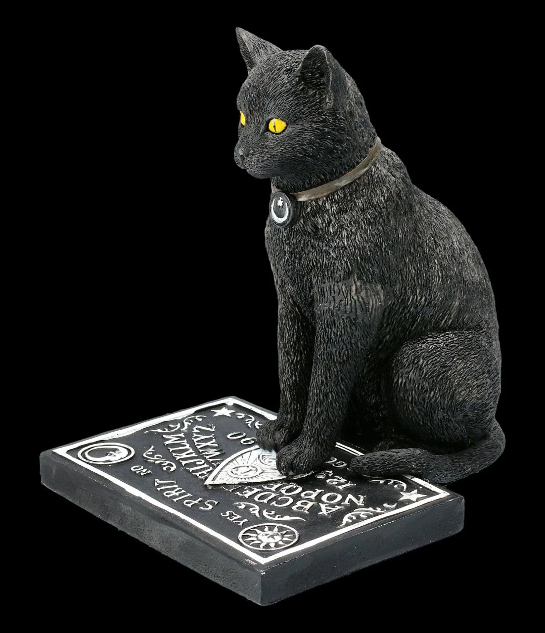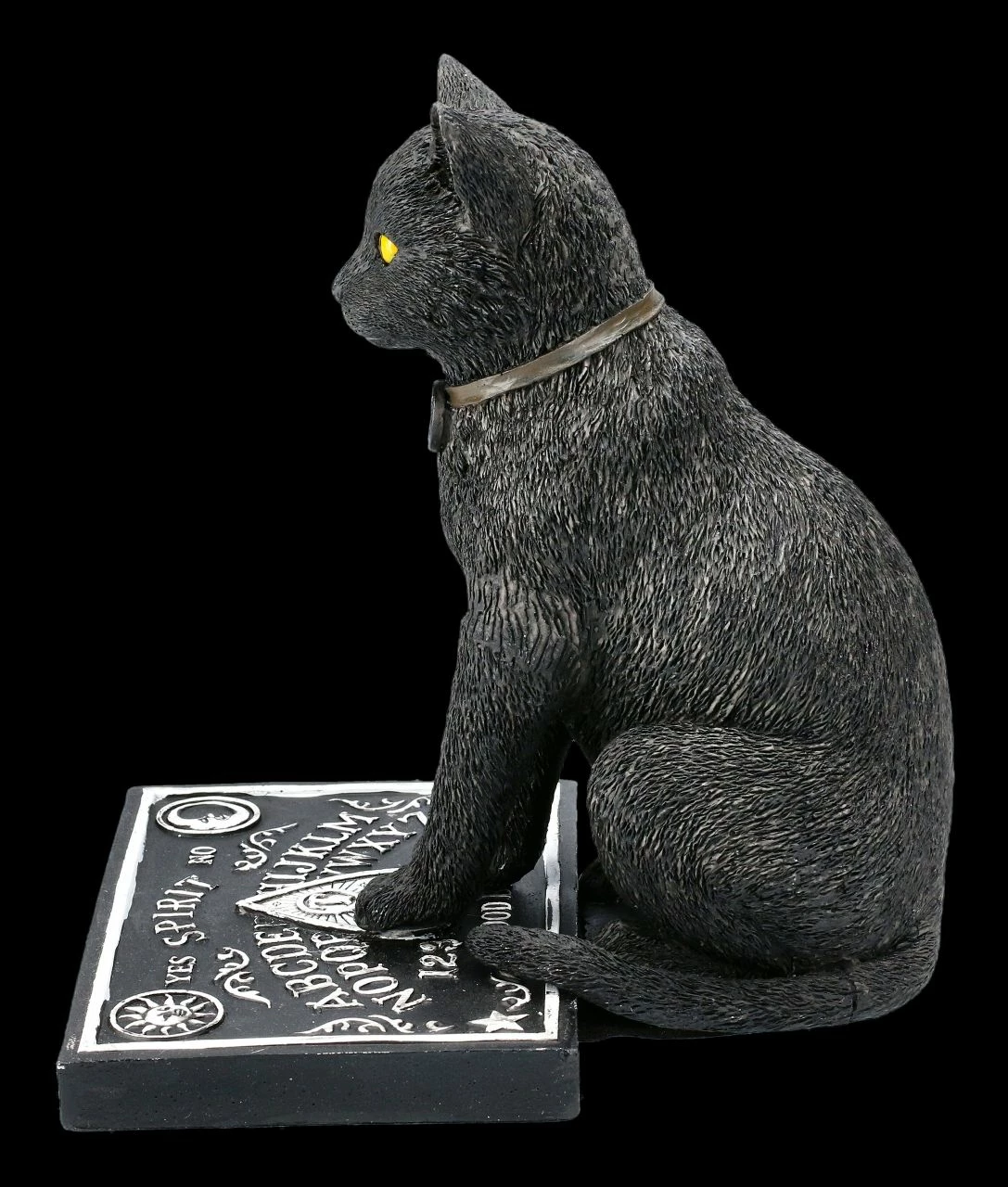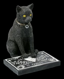 Die magische schwarze Katze mit den leuchtend gelben Augen sitzt vor dem Witchboard und hat die Pfoten auf die Planchette gelegt. Die Quija Cat ist detailreich aus handbemaltem Kunststein (Polyresin) gefertigt. Die schwarze Katze mit dem Quija Brett ist 19 cm hoch, 15 cm breit und 17,5 cm tief. Die Katzen Figur mit dem Wichboard gibt Ihrem Zuhause einen richtig mystischen Touch. Sie ist auch ein wunderbares Geschenk für alle, die an die Magie glauben.