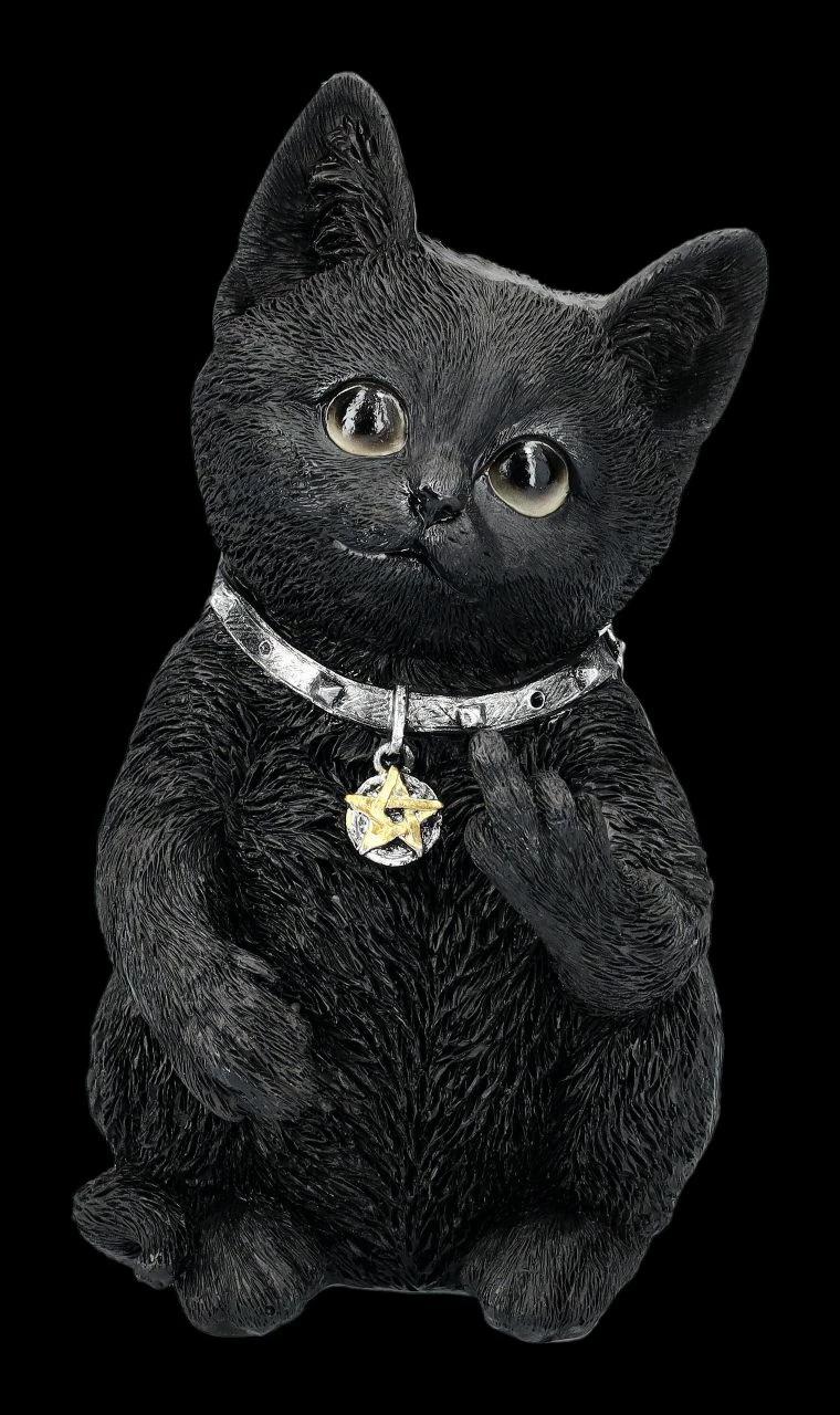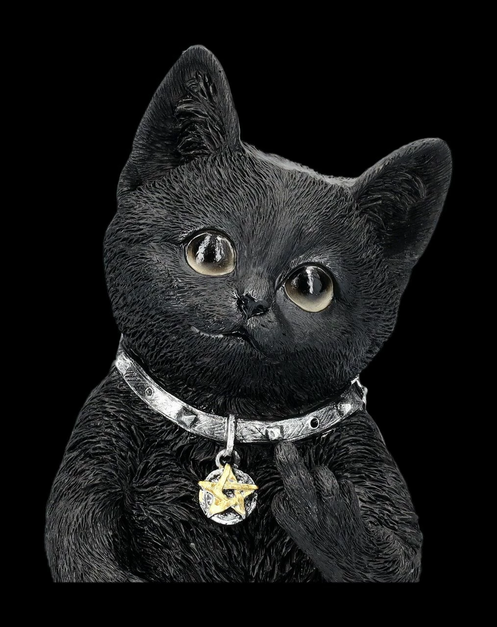 Mit treuherzigen Blick zeigt die schwarze Katze den Mittelfinger und damit, was sie von ihrem Gegenüber hält. Ob man die witzige Katzenfigur aber auf seinen Schreibtisch in einem Großraumbüro stellen sollte??? Die lustige Katzenfigur Cattitude wurde sorgfältig aus handbemaltem Kunststein (Polyresin) gefertigt. Sie ist 17 cm hoch, 10 cm breit und 9,5 cm tief und wird mit Sicherheit jedem sofort auffallen, der sie auf dem Schreibtisch oder im Regal entdeckt. Für Menschen mit Humor ist Cattitude auch ein witziges Geschenk.