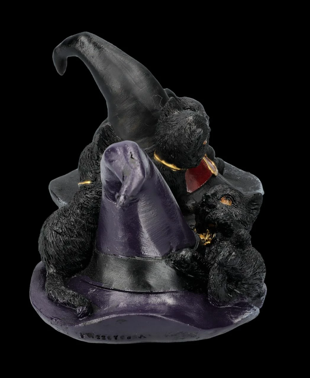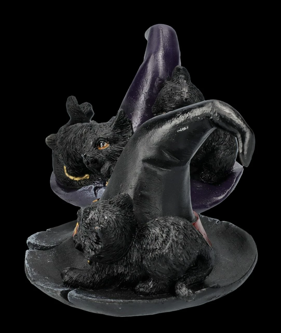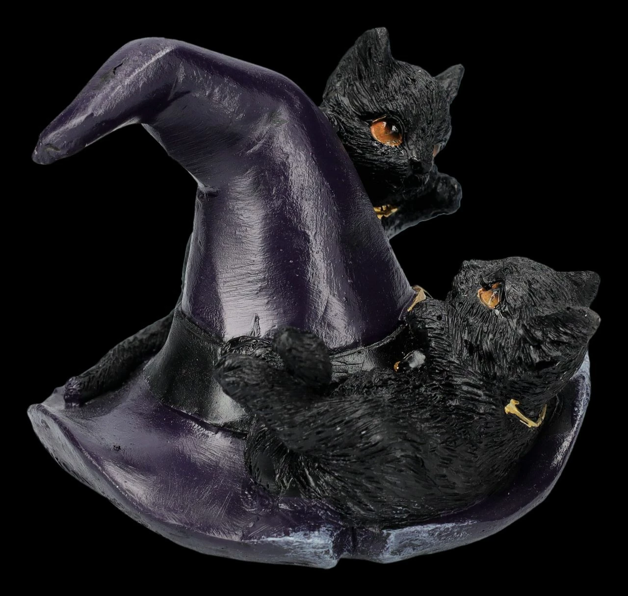 Ob das die Hexen wohl gerne sehen, wenn der Katzennachwuchs ihre Hüte zum Spielen nehmen? Aber die gute Gelegenheit können sich die Katzenkinder natürlich nicht entgehen lassen. Die lustigen schwarzen Katzenfiguren auf den Hexenhüten sind aus liebevoll handbemaltem Kunststein (Polyresin) und kommen im 2-er Set. Sie sind je 8 cm hoch, je 9,5 cm breit und je 9 cm tief und eine perfekte Deko an Halloween. Sie sind aber auch ein niedliches Geschenk, das man sogar mit seinen Freundinnen und Freunden teilen kann.