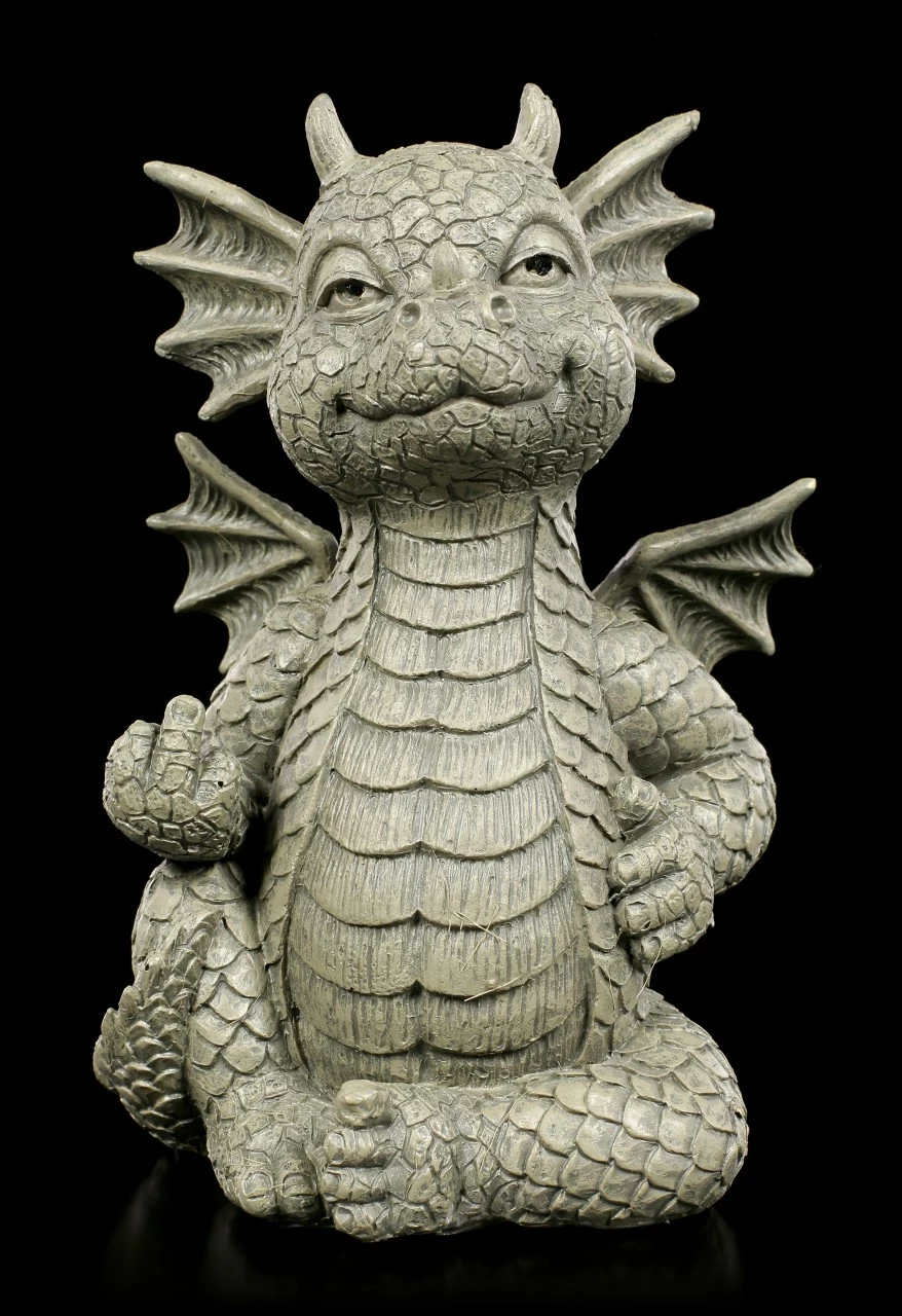 Na Na Na!? Der kleine Gartendrache ist aber schon ein wenig frech, oder nicht? Er reckt einfach Ihren Besuchern den Mittelfinger entgegen und grinst dabei ganz frech. Die handbemalte Gartenfigur mit dem frechen Drachen ist aus Kunststein (Polyresin) und ein witziges Geschenk, z.B. um die Gartensaison einzuläuten.