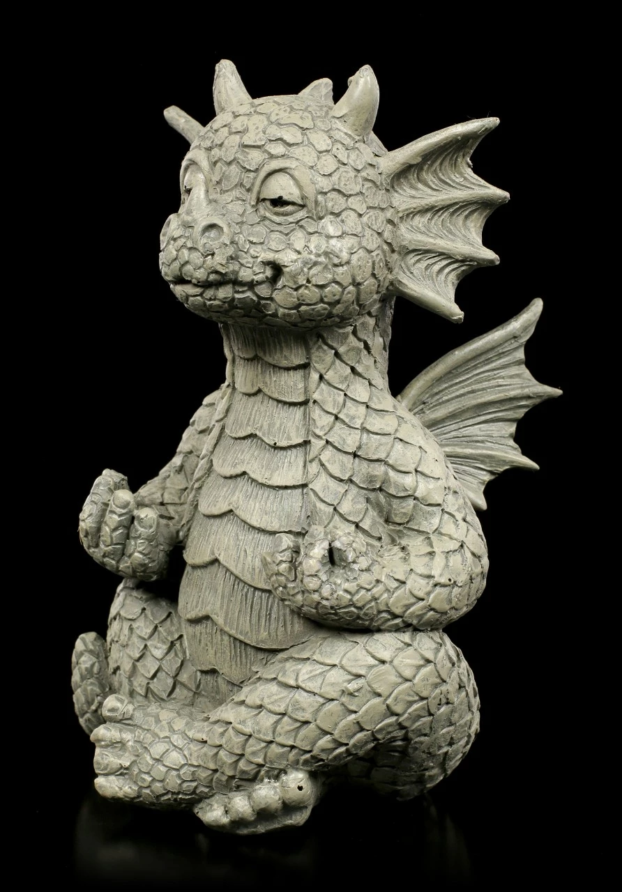 OHHHHMMMMHHHH! Bitte nicht stören! Der kleine Drache Yogi hat sich ganz in sich gekehrt und meditiert bei Ihnen auf der Terrasse. Die handbemalte Gartenfigur ist aus Kunststein (Polyresin) gefertigt und ein wunderbares Geschenk für einen lieben Menschen.