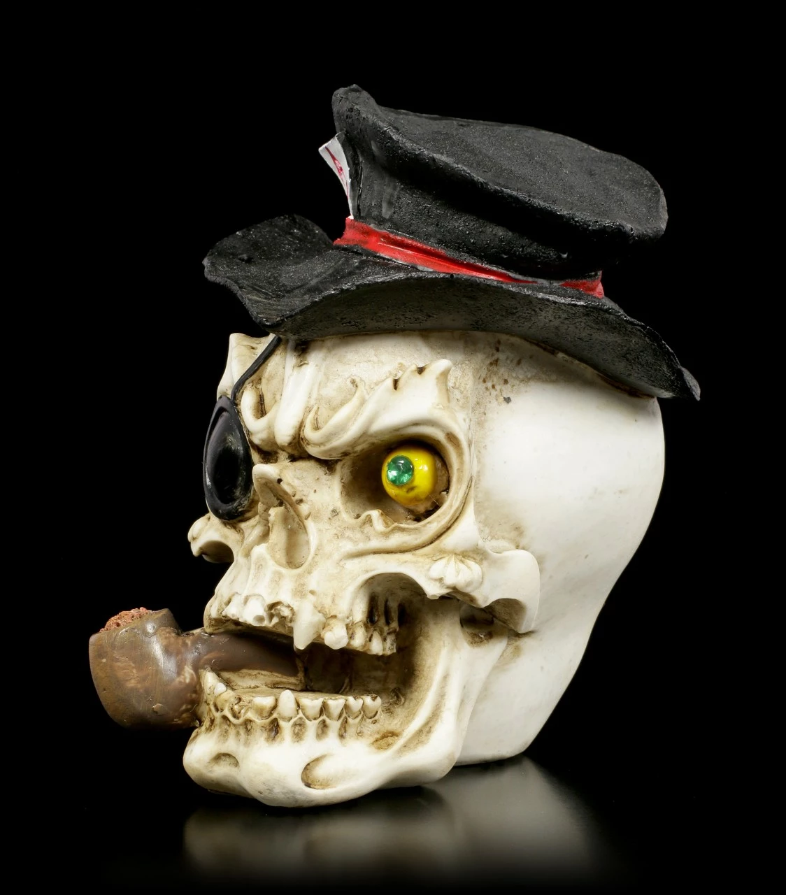 Totenschädel mit Zylinder und Augenklappe