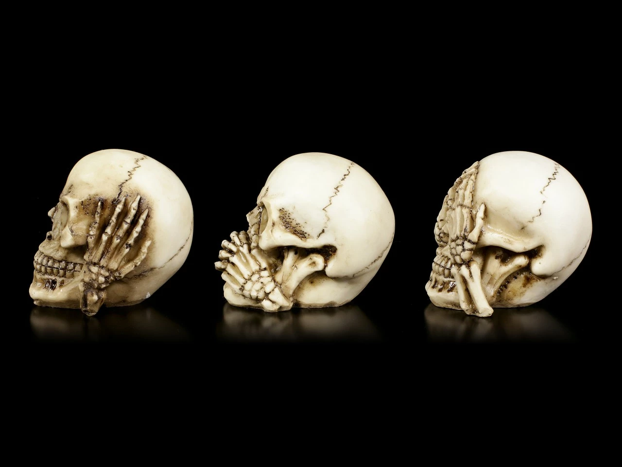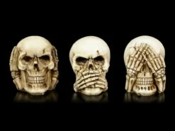 Die drei kleinen Totenköpfe zeigen Ihnen die drei Ziele einer gelungen zwischenmenschlichen Interaktion: Nichts Böses hören, nichts Böses sagen und nichts Böses sehen. Sie sind ein schönes Geschenk und Glücksbringer an einen lieben Menschen.