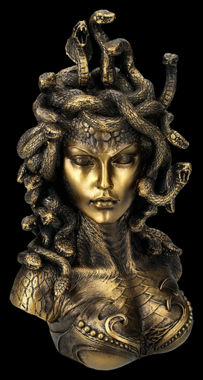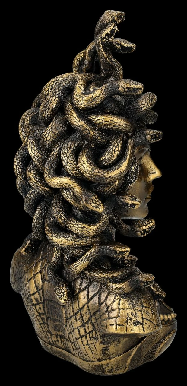 Mythos trifft Kunst: Die eindrucksvolle Medusa Büste in bronzefarbener Ausführung