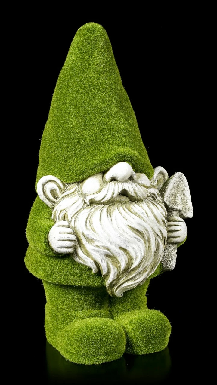 Tief im Wald hausen die Waldzwerge. Sie leben schon so lange im Verborgenen, dass sie gelernt haben sich perfekt zu tarnen. Dieser kleine lustige Geselle mit Schaufel sucht ein neues zu Hause, in dem er sich wohlfühlen kann. Wollen Sie dem moosbedeckten Zwerg aus handbemaltem Kunststein (Polyresin) und Filz, dies ermöglichen?