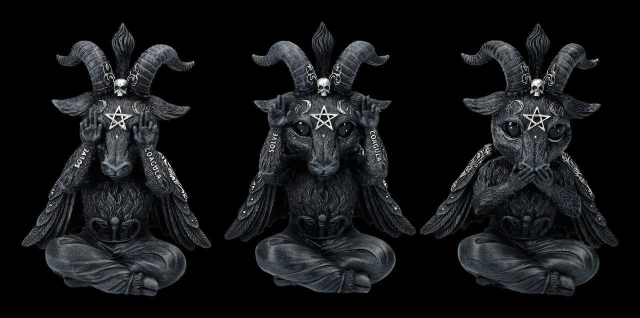 Irgendwie scheinen sie einen leicht verzweifelten Eindruck zu machen…. Aber kein Wunder, auch die kleinen Baphomets wollen nichts Böses sehen, hören und sagen. Die witzigen, je 13 cm hohen, je 10 cm breiten und je 5,5 cm tiefen Baphoboo Figuren aus der Cult Cuties Serie von Nemesis Now wurden sorgfältig aus handbemaltem Kunststein (Polyresin) gefertigt. Sie werden zum Hingucker auf jedem Schreibtisch, sind aber auch ein vielsagendes Geschenk und werden inklusive eines toll bedruckten Geschenkkartons verschickt.