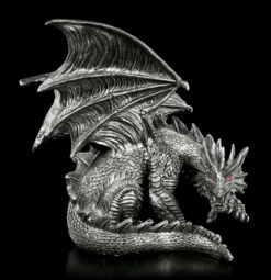 Passen Sie auf! Der silber schwarze Drache Obsidian hat sich zum Angriff bereit gemacht. Mit seinen roten Augen sieht er sehr gefährlich aus. Die Figur wurde aus hochwertigem Kunststein (Polyresin) geschaffen und liebevoll handbemalt. Ein Traum in einer Drachensammlung!