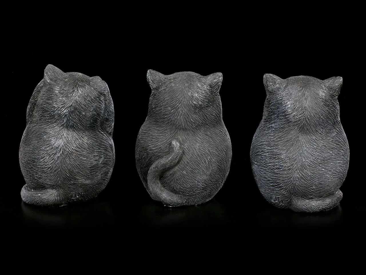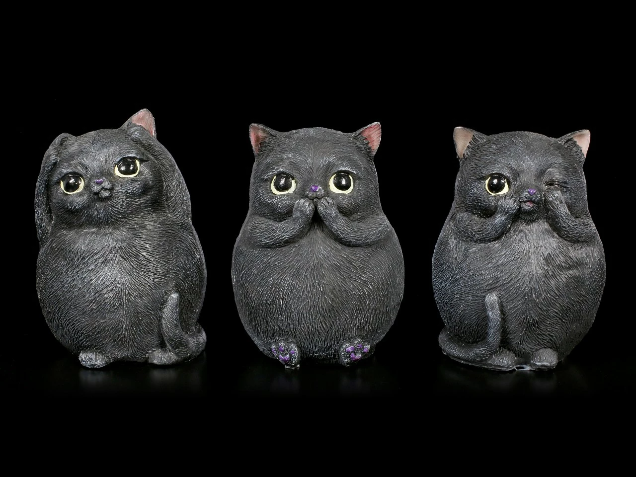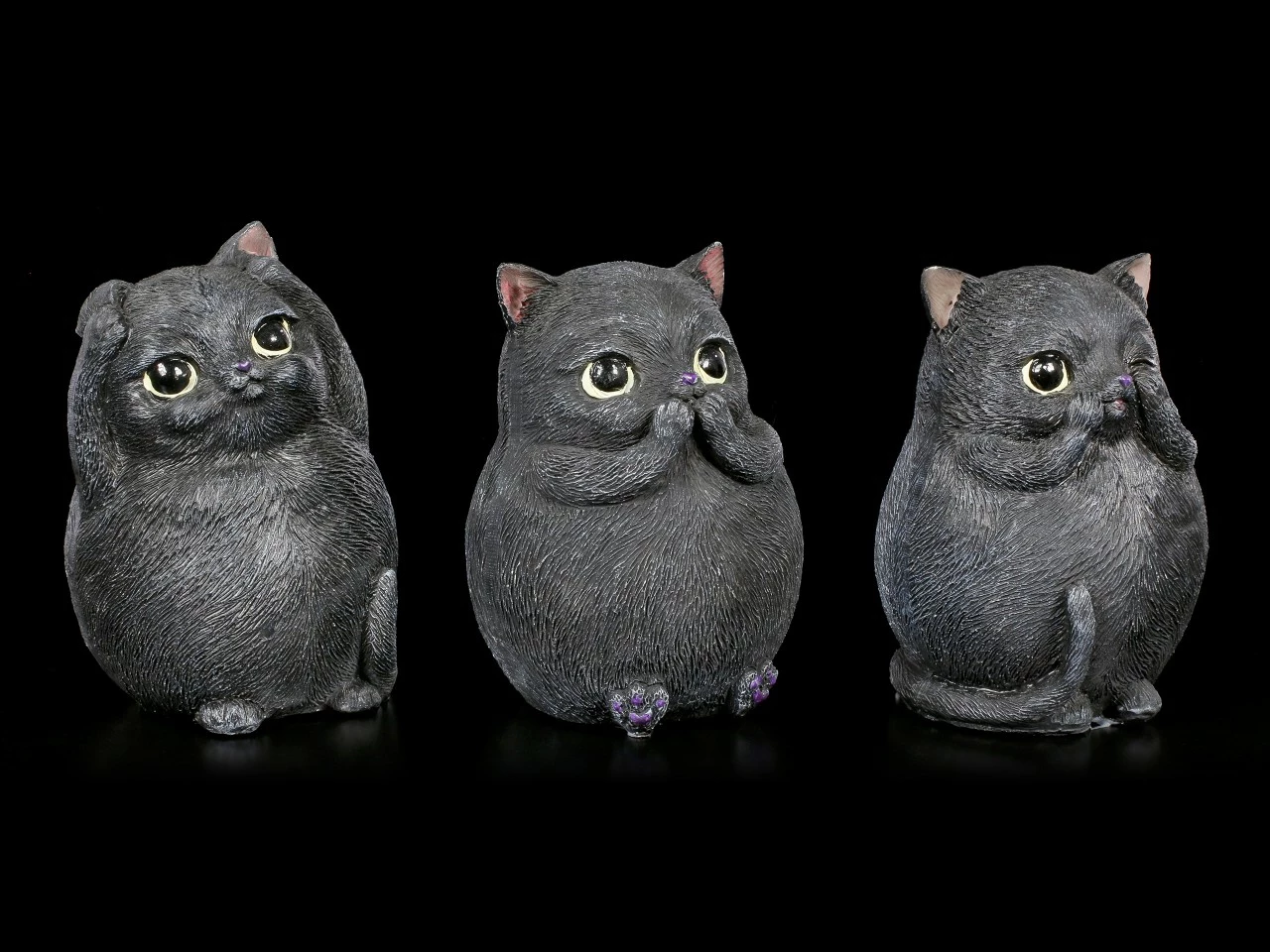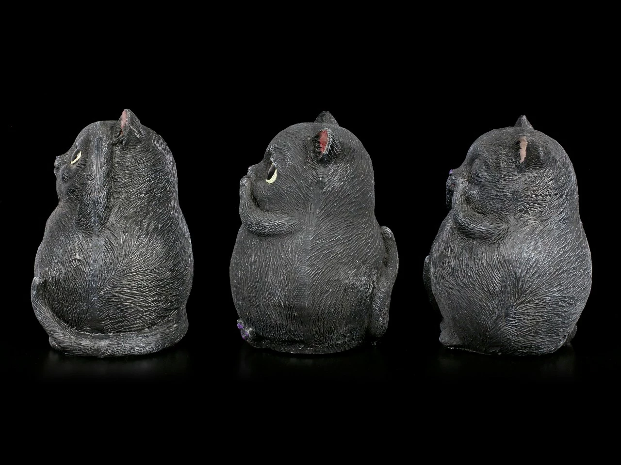 Sind sie nicht herzallerliebst – die drei pummeligen schwarzen Katzen? Das lustige Trio Nichts Böses Hören, Nichts Böses Sprechen, Nichts Böses Sehen aus handbemaltem Kunststein wird Sie verzaubern.