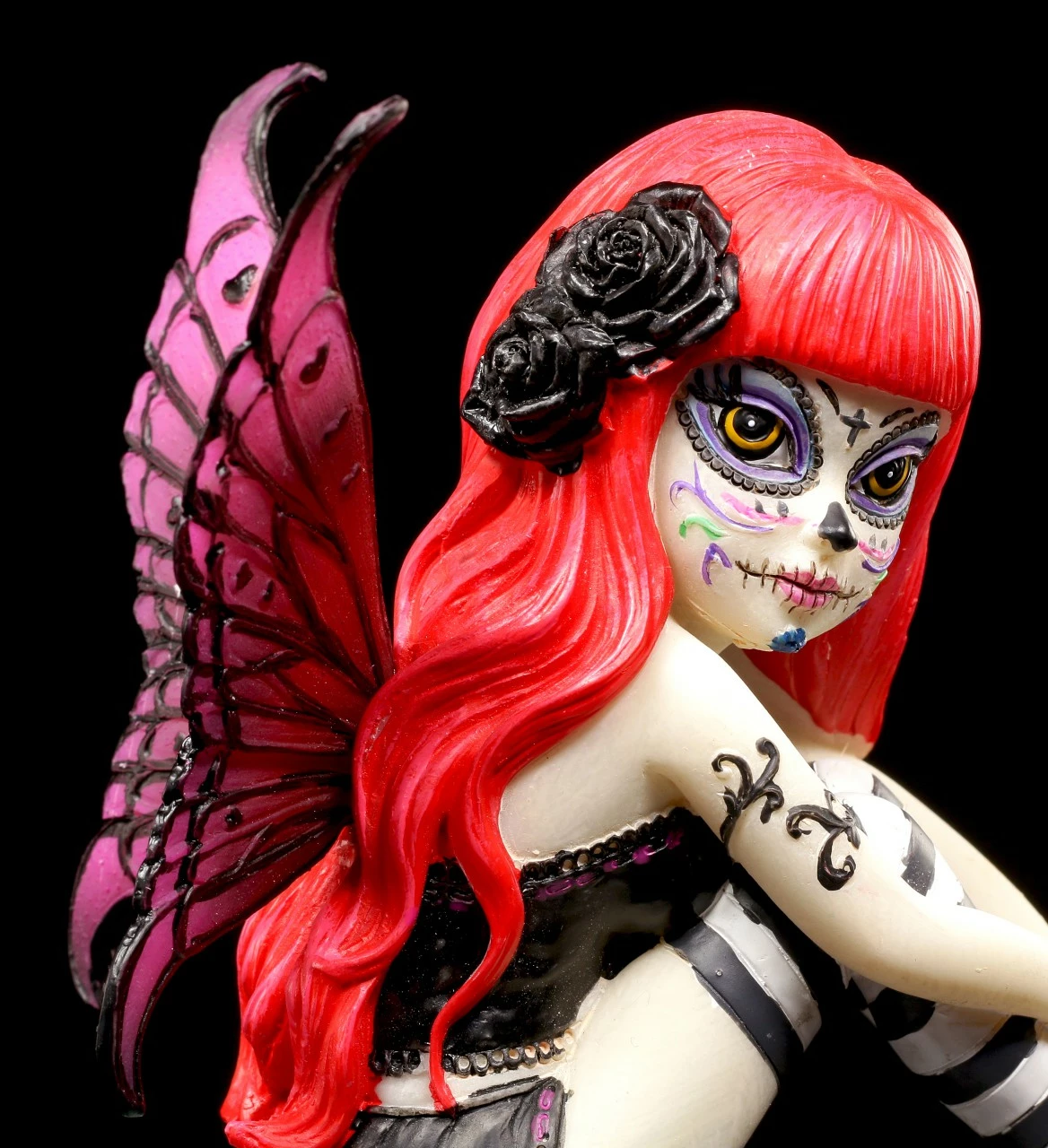 Die Elfe Valentina gehört zur Familie der Sugar Skull Fairy Kollektion. Sie ist aus Kunststein gefertigt und wurde von Hand bemalt. Mit viel Liebe zum Detail wurde das Gesicht der Elfen Figur gestaltet.