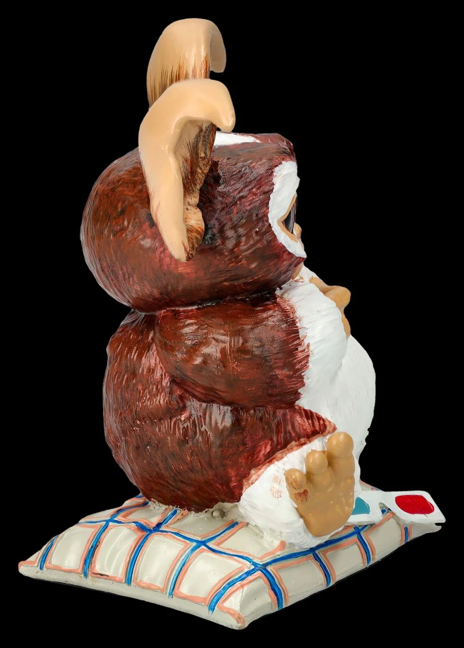 Gizmo, der niedliche Mogwai hat für den Abend schon mal was vor – er will unbedingt gemeinsam mit seinen Freunden den neuesten 3D-Film angucken. Ein bequemes Kissen hat er sich schon organisiert und seine 3D-Brille liegt bereit. Wenn das nicht eine Aufforderung ist? Aber wenn es spät wird, unbedingt daran denken: Das Knabberzeug in Sicherheit bringen, denn es kann gefährlich werden, Gizmo nach Mitternacht zu füttern! Die liebevoll handbemalte Gremlins-Figur von Nemesis Now ist detailreich aus Kunststein (Polyresin) gefertigt und 12 cm hoch, 14 cm breit und 9,5 cm tief. Gizmo mit der 3D-Brille ist ein lustiges Geschenk für alle Fans und kommt inklusive eines toll bedruckten Geschenkkartons. Als offiziell lizenziertes Merchandise ist der niedliche Gremlins Gizmo aber auch eine großartige Ergänzung einer Sammlung. Unser Shop bietet übrigens noch weitere fantastische Fan-Artikel.