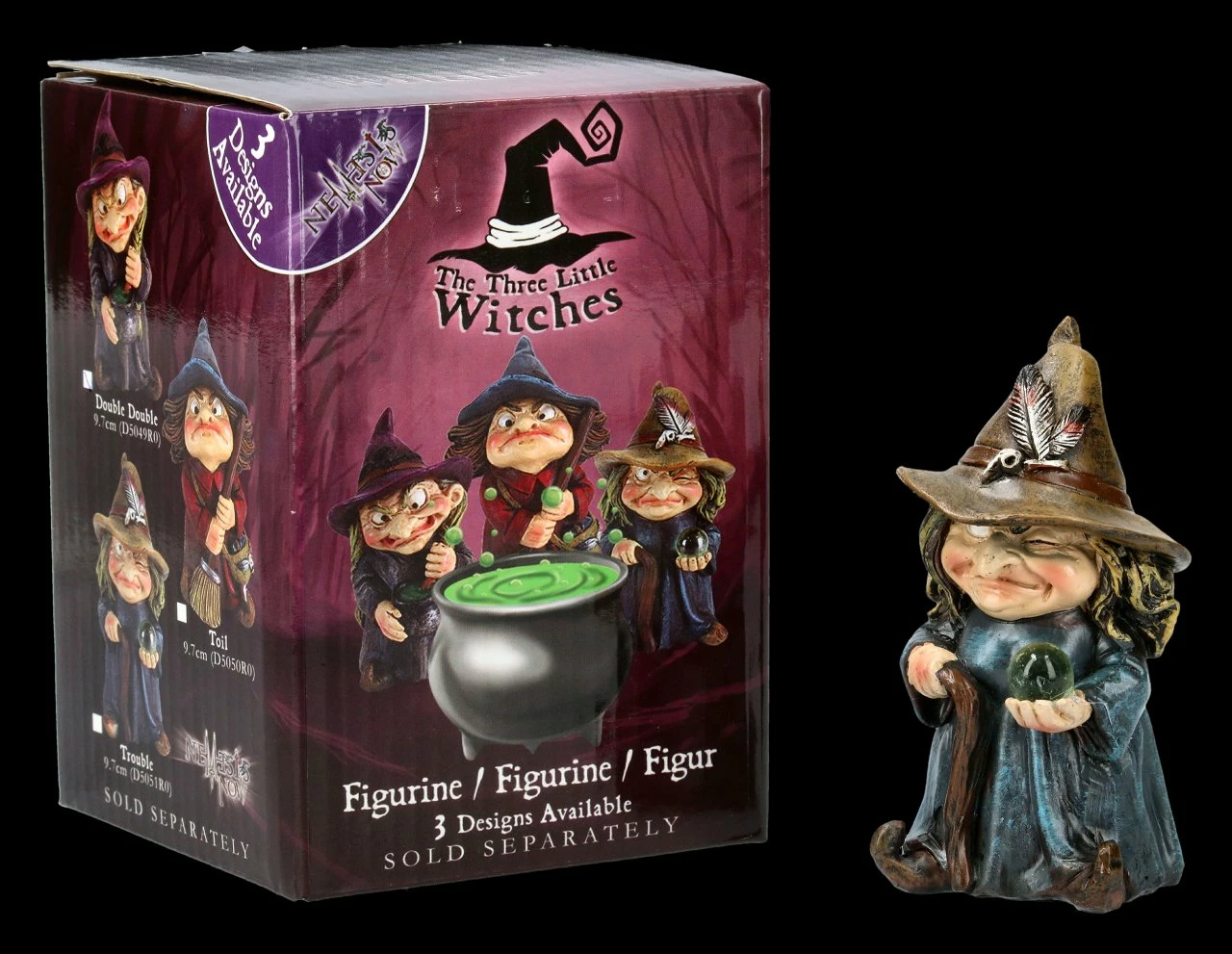 Was hat die kleine Hexe nur vor, wenn sie in ihre Glaskugel schaut – wird sie verraten, ob sie was darin sieht, oder einfach nur boshafte Geschichten erzählen und Ärger machen? Die lustige kleine Hexenfigur mit der Glaskugel von Nemesis Now ist mit viel Humor aus Kunststein (Polyresin) gefertigt und handbemalt. Sie ist 9,5 cm hoch, 5,5 cm breit und 5 cm tief. Die kleine Hexe Trouble ist auch ein witziges Geschenk und wird inklusive einer Geschenkbox verschickt.