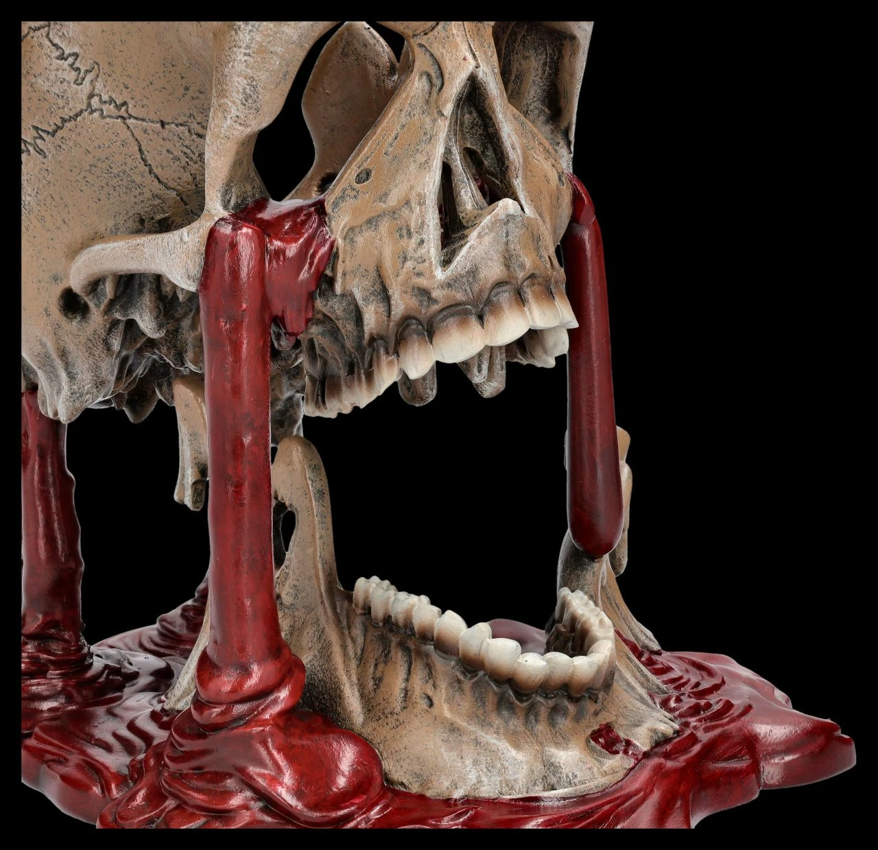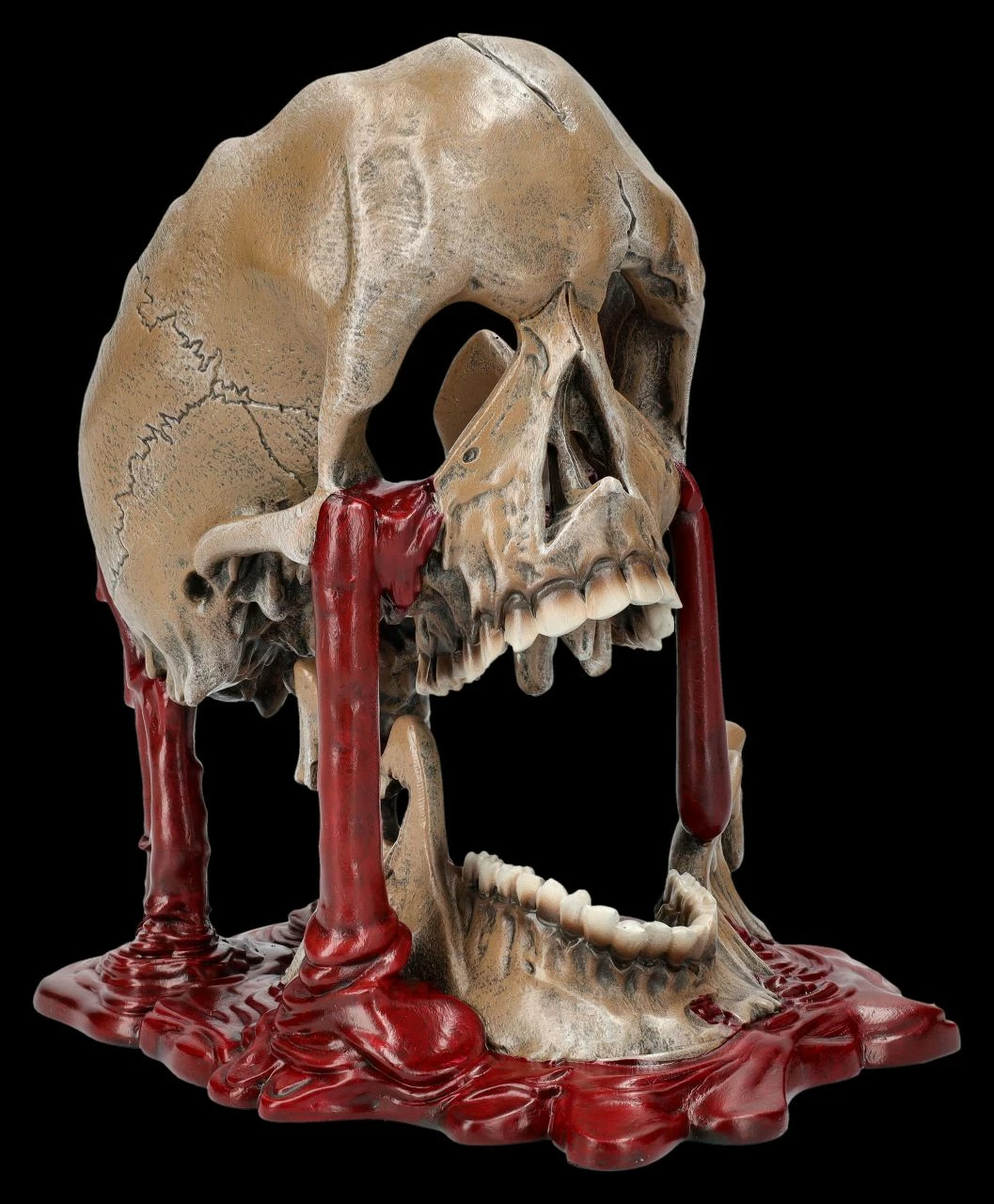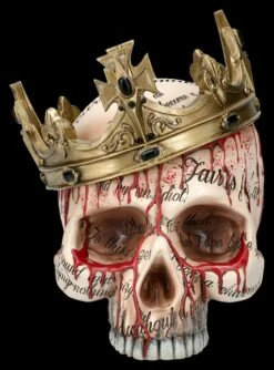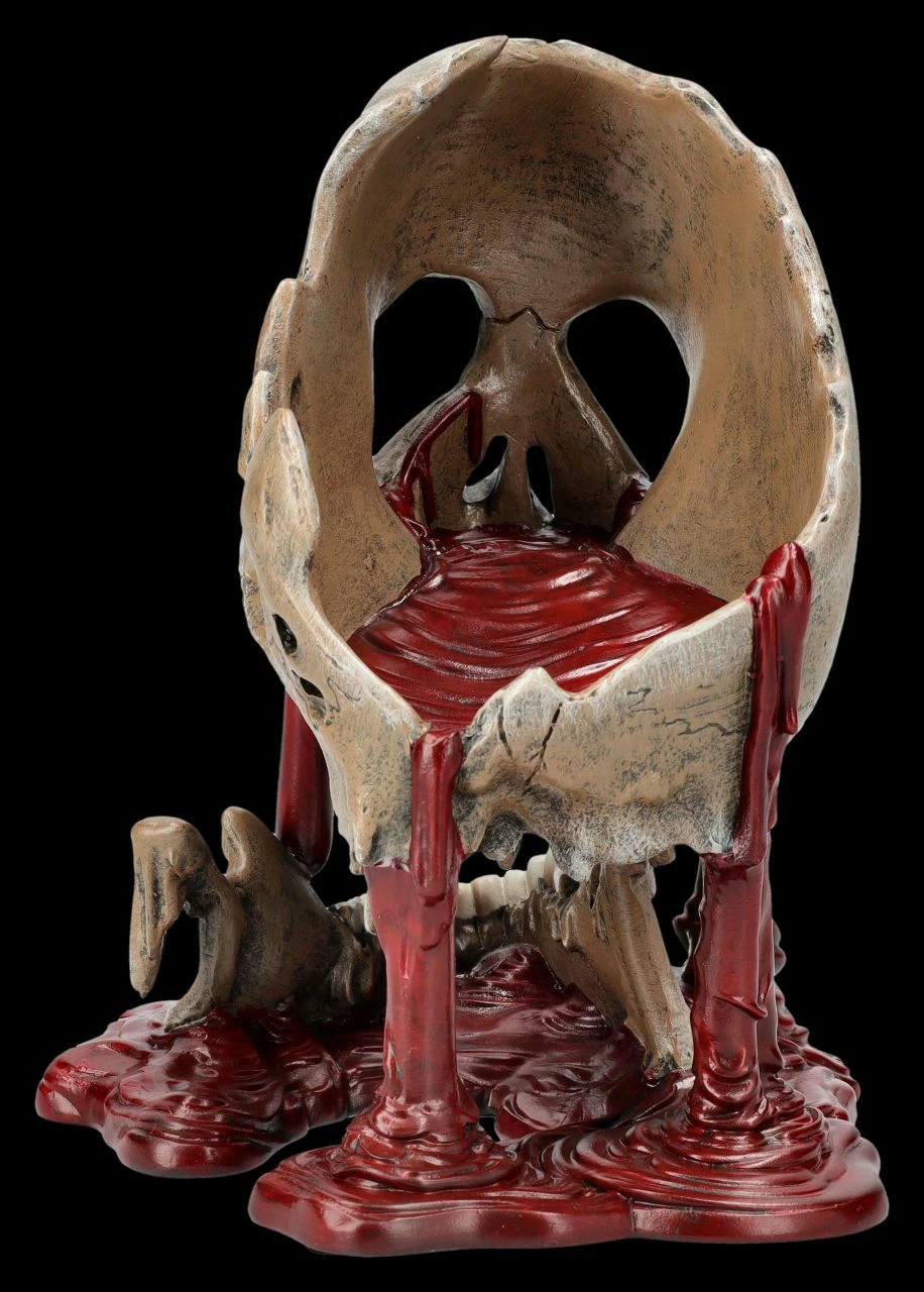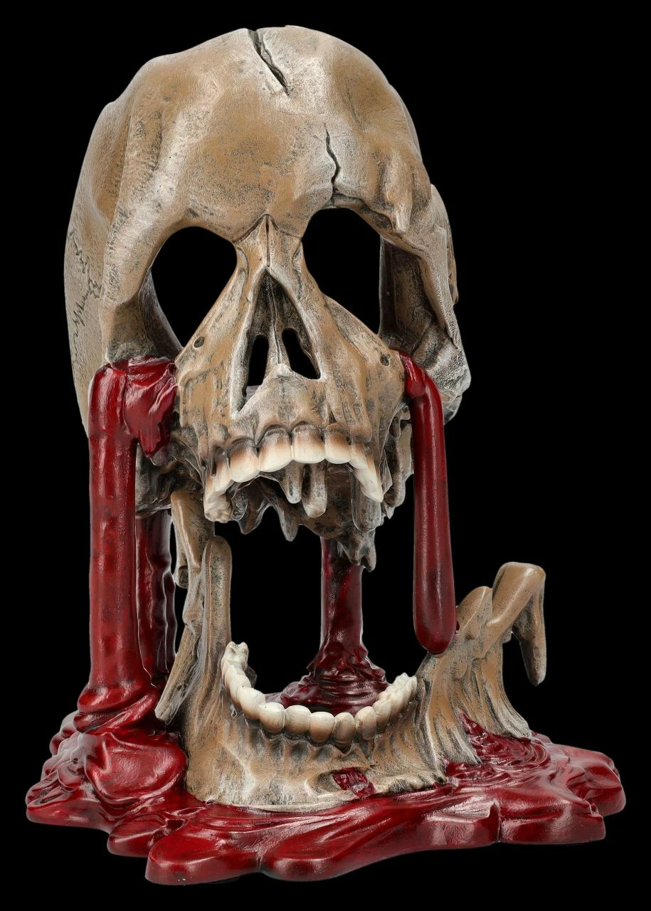 Selbst für hartgesottene Totenkopf-Sammler ist diese Skulptur mit dem schmelzenden Totenkopf und den Blutströmen, die aus ihm herauszufließen scheinen, eine ziemlich gruselige Angelegenheit. Dann heißt diese Skulptur auch noch ‚Meltdown‘, also ‚Kernschmelze‘. Der 17 cm hohe, 13 cm breite und 16,5 cm tiefe Totenkopf von Nemesis Now ist detailreich aus handbemaltem Kunststein (Polyresin) entstanden und wahrlich – vielleicht sogar als Warnung – ein ganz besonderer Blickfang, der eher Schrecken verbreitet. Der gruselige Totenkopf mit Blut kann aber auch verschenkt werden und kommt mit einem toll bedruckten Geschenkkarton.