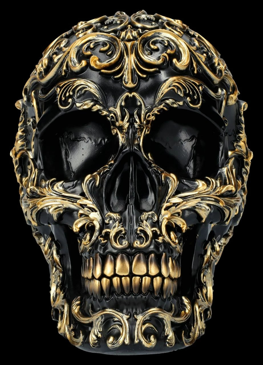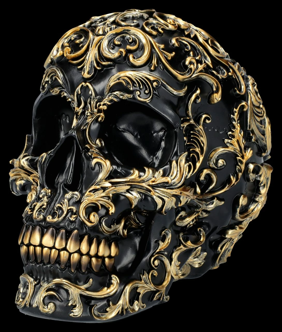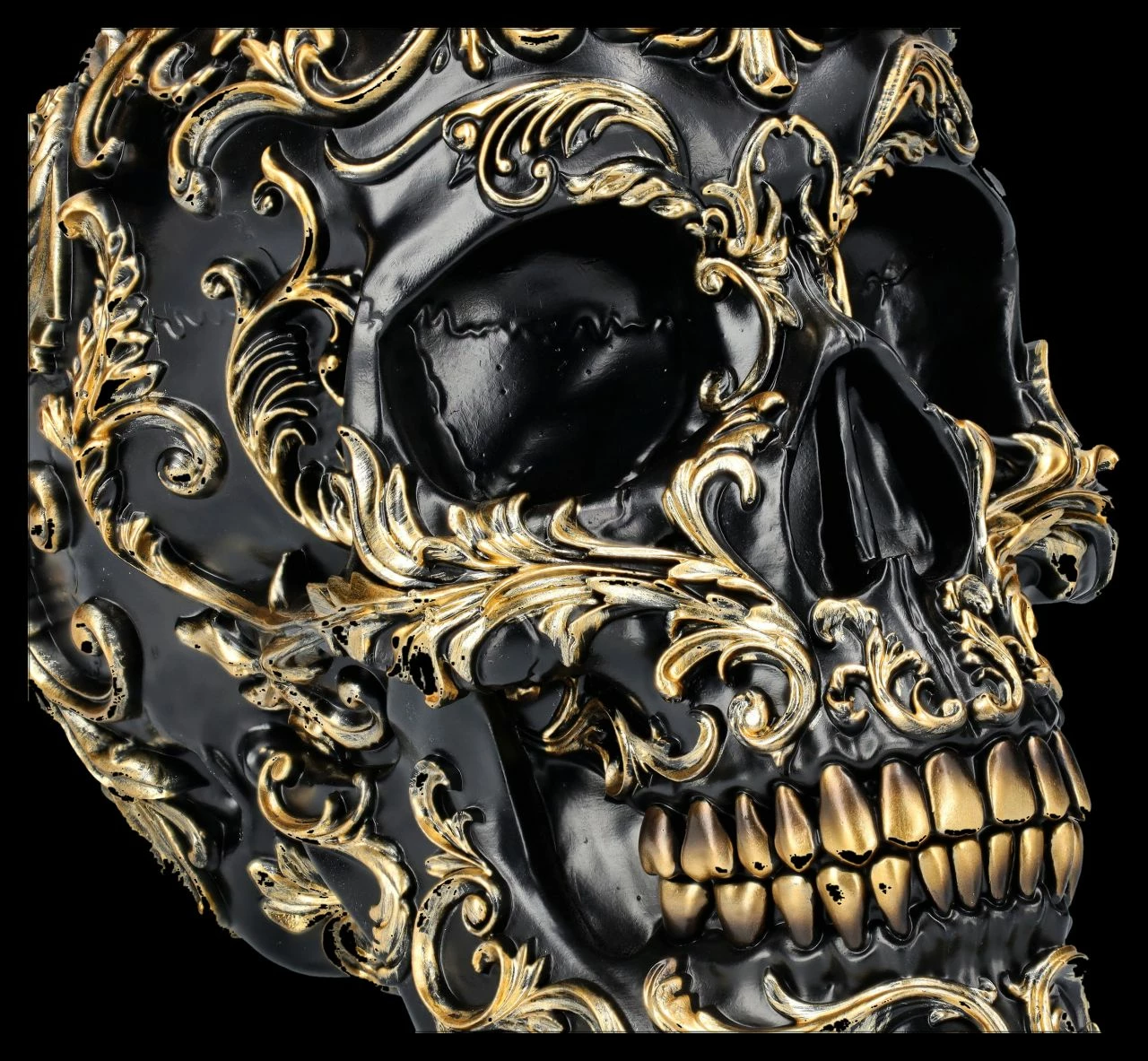 Barocke Schönheit: Der Schwarz-Goldene Totenkopf von Nemesis Now