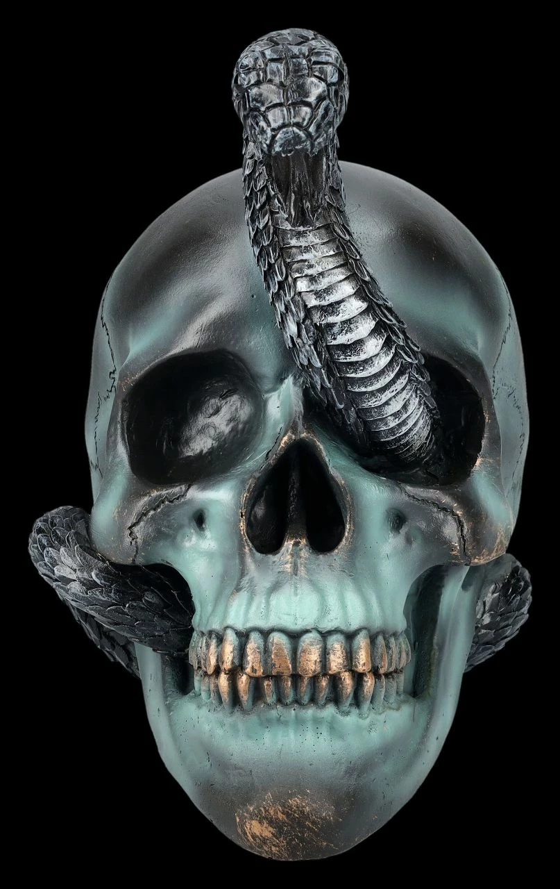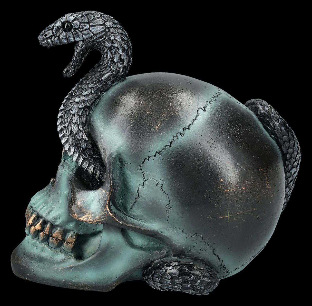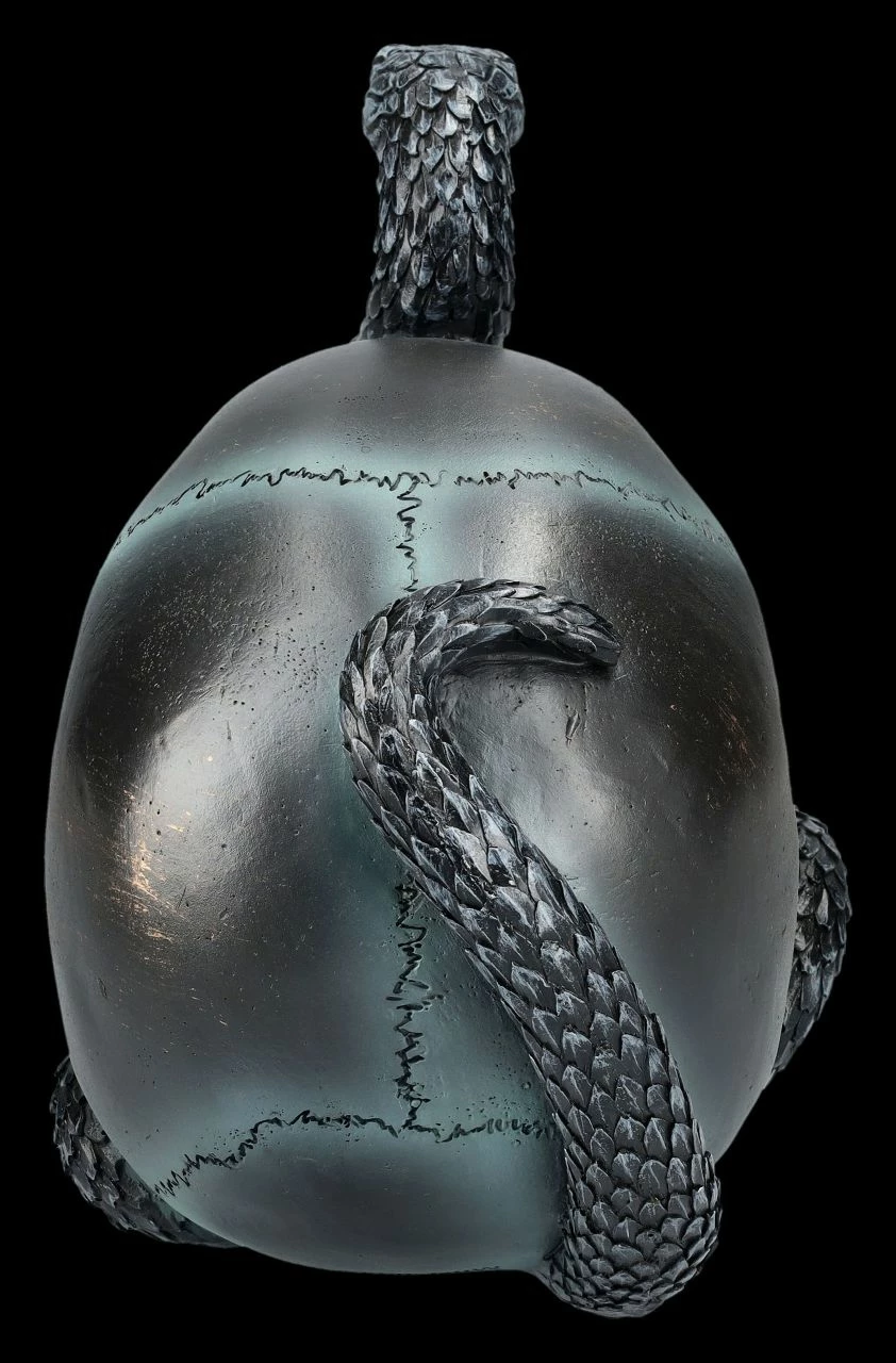Schlangenhaftes Schicksal nennt Nemesis Now diesen unglaublichen Totenkopf, aus dem sich eine große Schlange windet. Der 17,5 cm hohe, 12,5 cm breite und 18,5 cm tiefe in magischen Farben glänzende Totenkopf wurde sorgfältig und detailreich aus hochwertigem Kunststein (Polyresin) gefertigt und von Hand bemalt. Der fantastische Schädel mit der Schlange kommt inklusive Geschenkbox und ist das perfekte Geschenk.für jeden, der seinen Bereich mit düsterer Fantasie gestalten möchte.