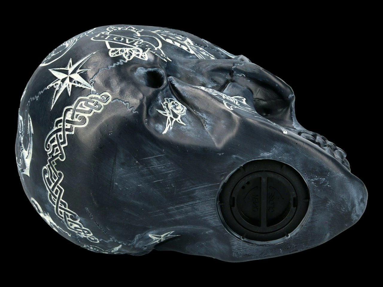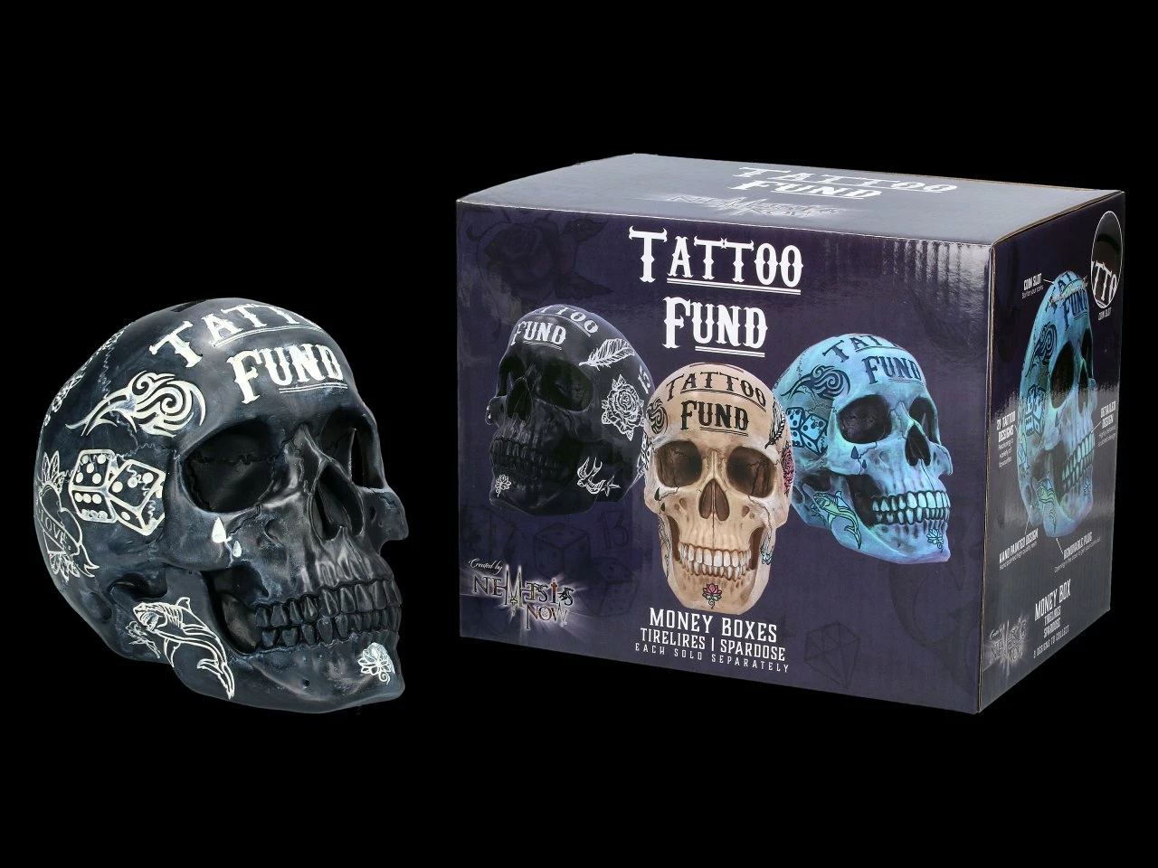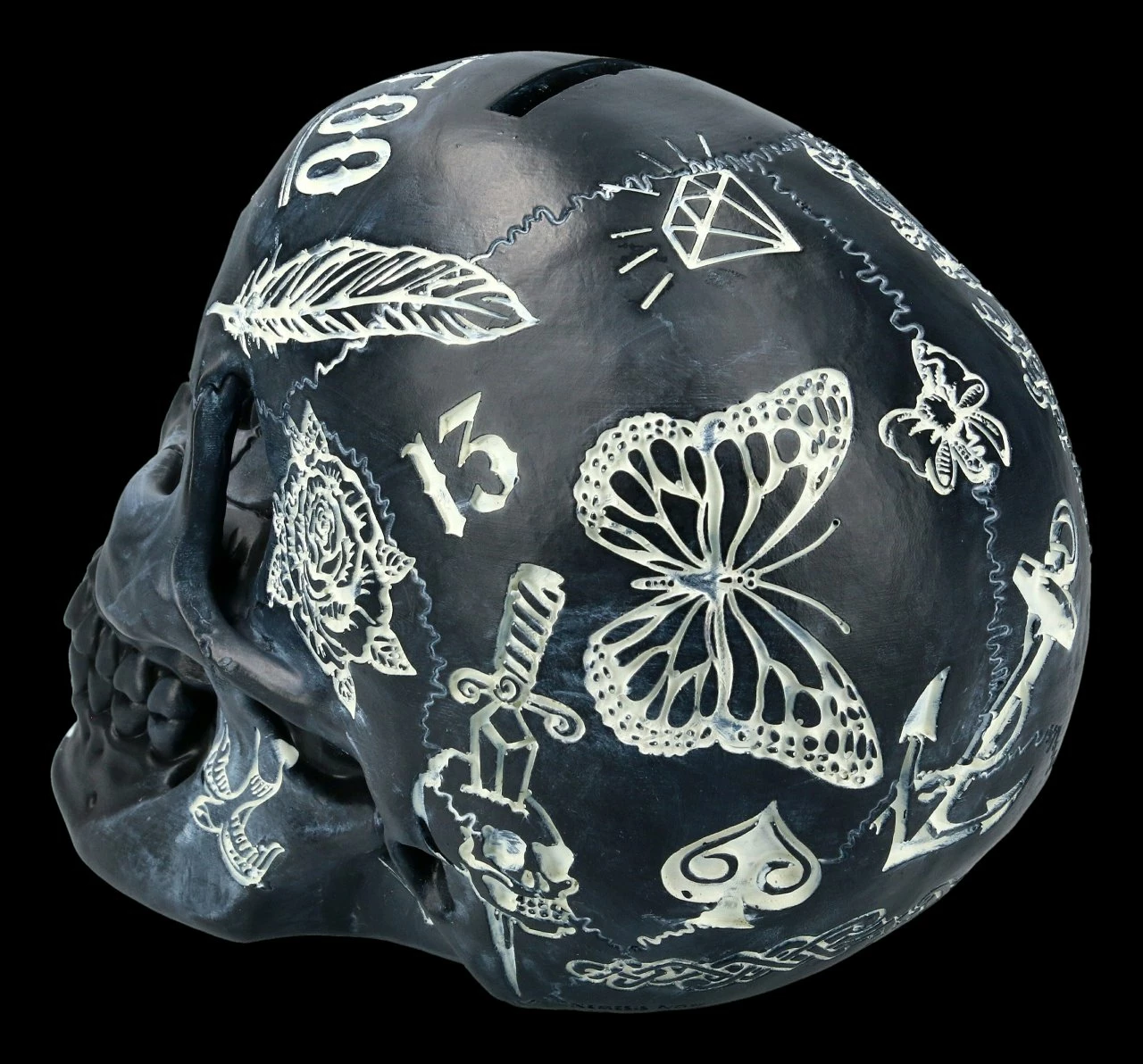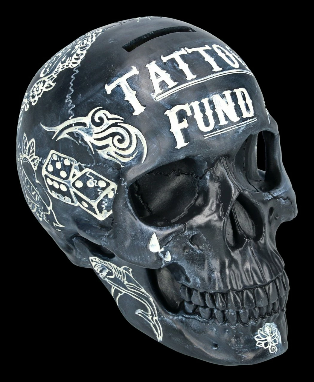 Detailliert aus Kunststein (Polyresin) gefertigt und handbemalt, ist die stylische Spardose mit dem schwarzen Totenkopf perfekt dazu geeignet, auf sein nächstes Tattoo zu sparen. Mit einer Höhe von 15 cm, der Breite von 12 cm und der Tiefe von 19 cm bietet sie genug Platz für alles, was man selber spart oder als Zuschuss sammelt. Die Tattoo Spardose mit dem schwarzen Totenkopf ist auch ein cooles Geschenk und wird inklusive einer bedruckten Geschenkbox verschickt.