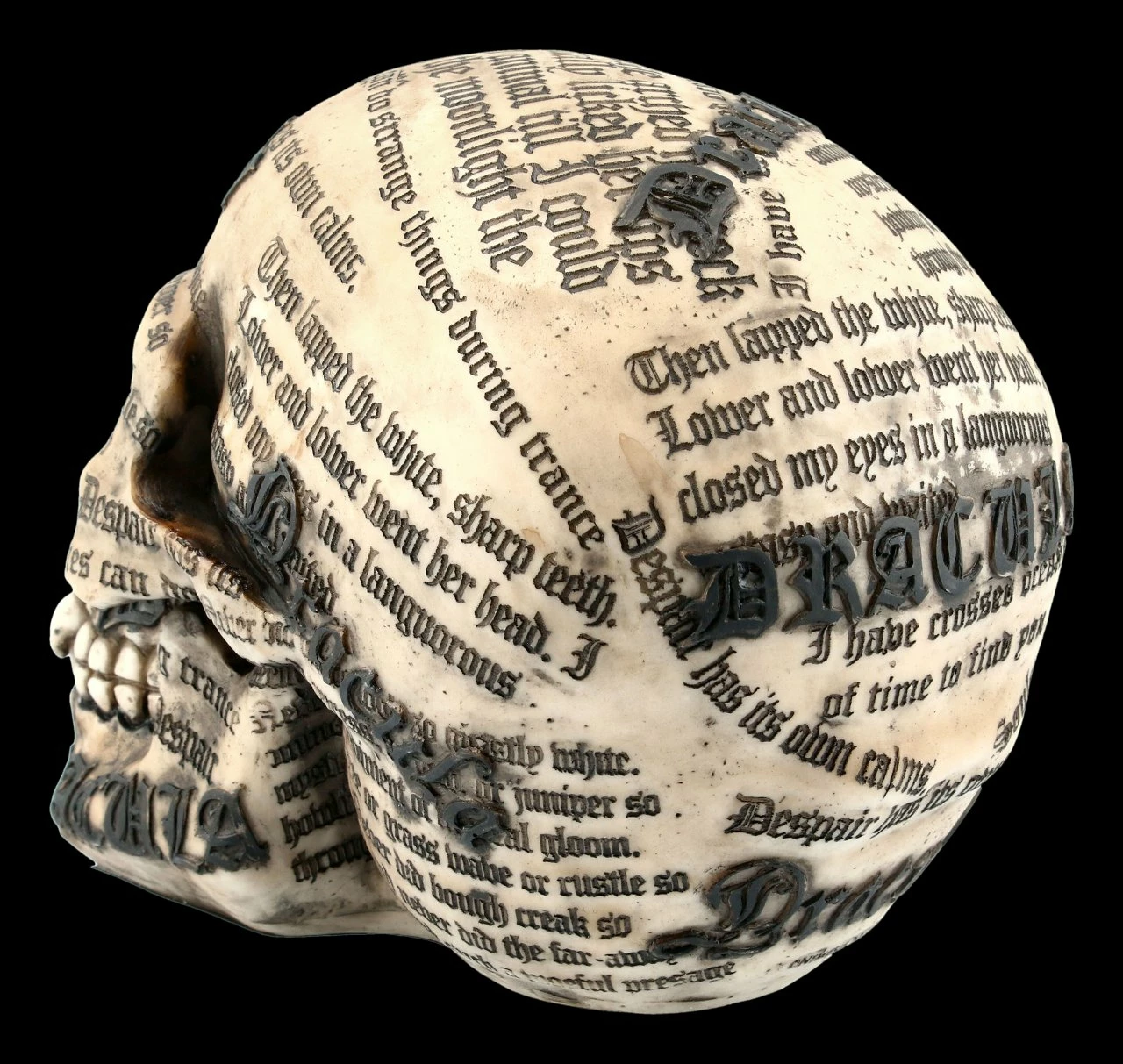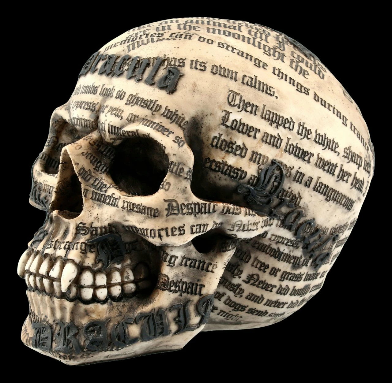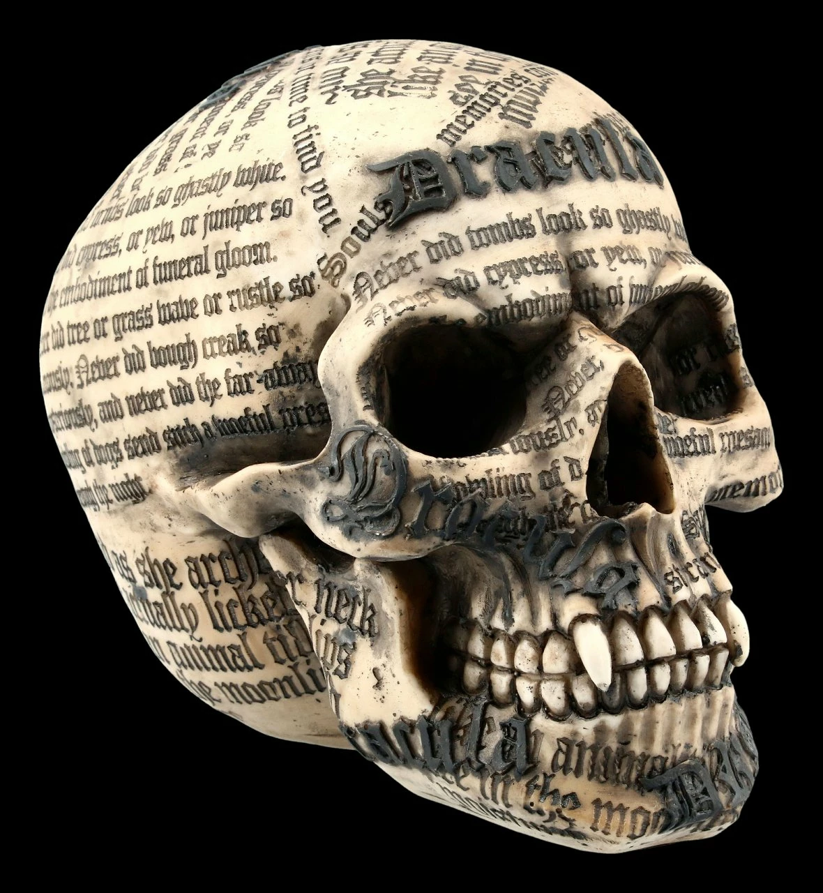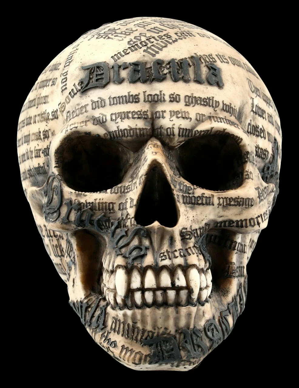 Gruseliger Vampir Totenschädel mit Dracula’s Geschichte