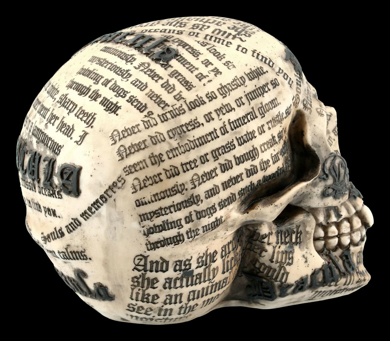 Wow – der Totenschädel eines Vampirs! Wer sich den genauer ansehen möchte, braucht aber Zeit, bis Dracula’s Gechichte, die auf diesem gruseligen Totenschädel zu sehen ist ,auch gelesen wurde. Der tolle Vampir Totenkopf mit Draculas Tale ist sehr detailreich aus handbemaltem Kunststein (Polyresin) gefertigt. Mit der Höhe von 14 cm, der Breite von 12 cm und der Tiefe von 17 cm ist er eine wahrlich ausgefallene Deko.