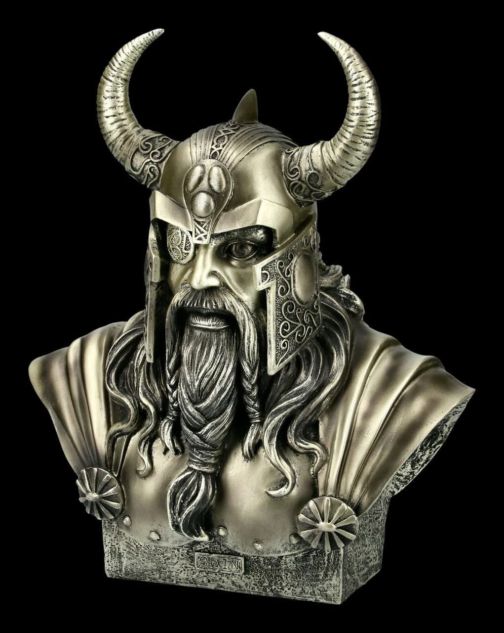 Mit der Büste von dem nordischen Göttervater Odin können Sie sich die Kraft der Wikinger Götter nach Hause holen. Die Büste wurde vom bekannten Künstler Monte M. Moore geschaffen und überzeugt durch die herausragende genaue Machart.