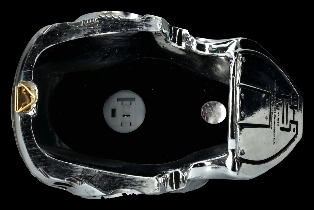 Drückt man den Knopf an der Seite des Schädels, blinken die LED Augen für einige Sekunden rot.