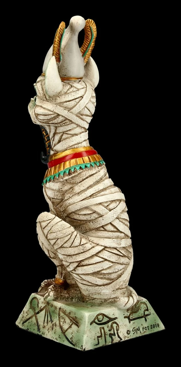 Eine ungewöhnliche und extravagante Darstellung des ägyptischen Totengottes Osiris ist diese Figur des berühmten amerikanischen Fantasykünstler Stanley Morrison. Dass er vor allem auch für seine einfallsreichen Drachenfiguren bekannt ist, sieht man dieser einzigartigen, in Bandagen gewickelten Figur des ägyptischen Gottes Osiris an, der – bevor er von seinem Bruder Seth getötet wurde – einer der ägyptischen Könige war. Diese ungewöhnliche, auf einem mit Schriftzeichen bedeckten Podest stehende Osiris Figur ist außerordentlich detailreich aus Kunststein (Polyresin) gefertigt und einfallsreich handbemalt. Die fantastische Osiris Figur aus der Serie Summit Collection ist 20 cm hoch, 7,5 cm breit und 8 cm tief und eine ausgefallene Deko, die sicher alle Blicke auf sich ziehen wird. Für weitere tolle Figuren des Künstlers Stanley Morrison blättern Sie einfach in unserem Shop.