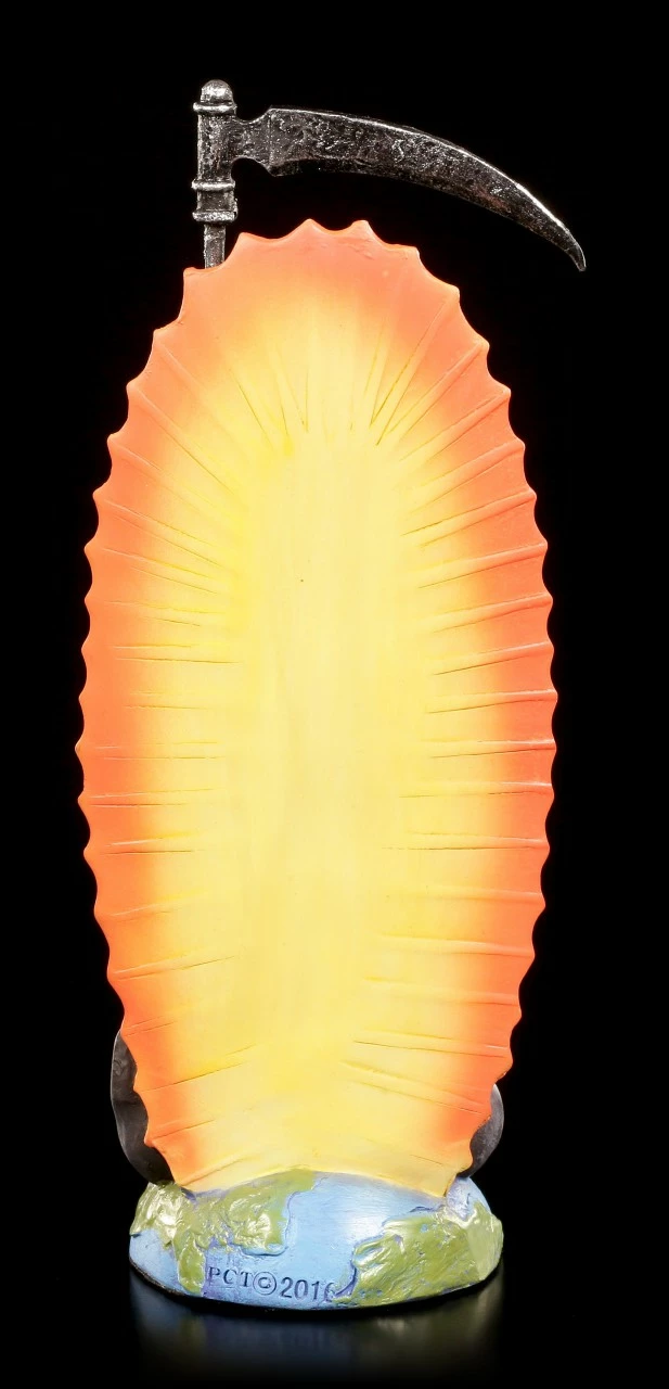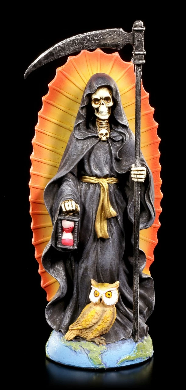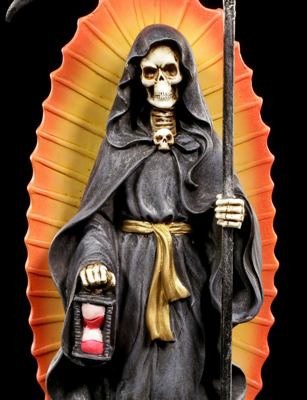 Schenken Sie Glück, Schutz und Liebe einem Menschen, der Ihnen besonders am Herzen liegt. Die schwarze Santa Muerte Figur hebt sich hervorragend von dem rot/gelben Hintergrund ab und ist ein wunderbares Geschenk.