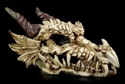 Für alle Gothics, Fanatasy-Liebhaber und Drachen-Fans: Diese Dekofigur aus Kunststein gibt den Schädel eines Drachens realistisch wieder. Die Hörner, Knochenplatten und Fangzähne sind detailgetreu und ausdrucksstark dargestellt, wodurch der Drachenschädel unglaublich echt wirkt.