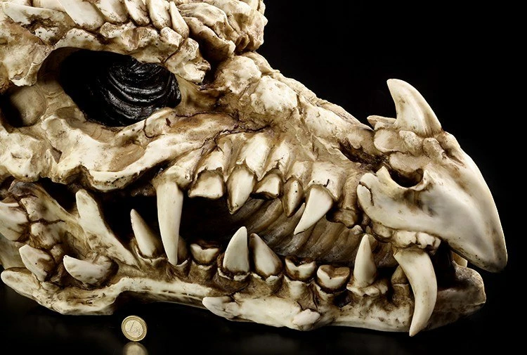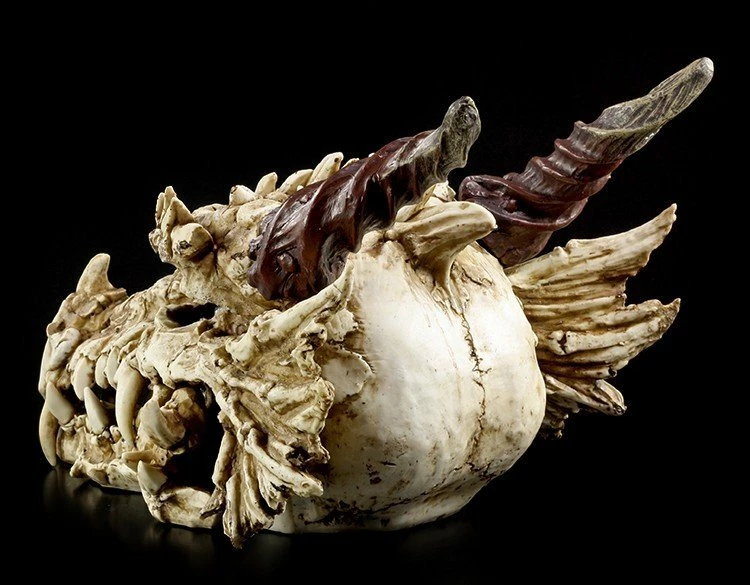 Der Mythologie nach ist der Drache ein Lebewesen mit beängstigender Kraft. Er gilt als Krafttier. Und auch diese Darstellung des Drachen-Totenkopfs zeigt seine Stärke. Durch seine Größe entfaltet der Schädel seine volle Wirkung in deinem Raum.