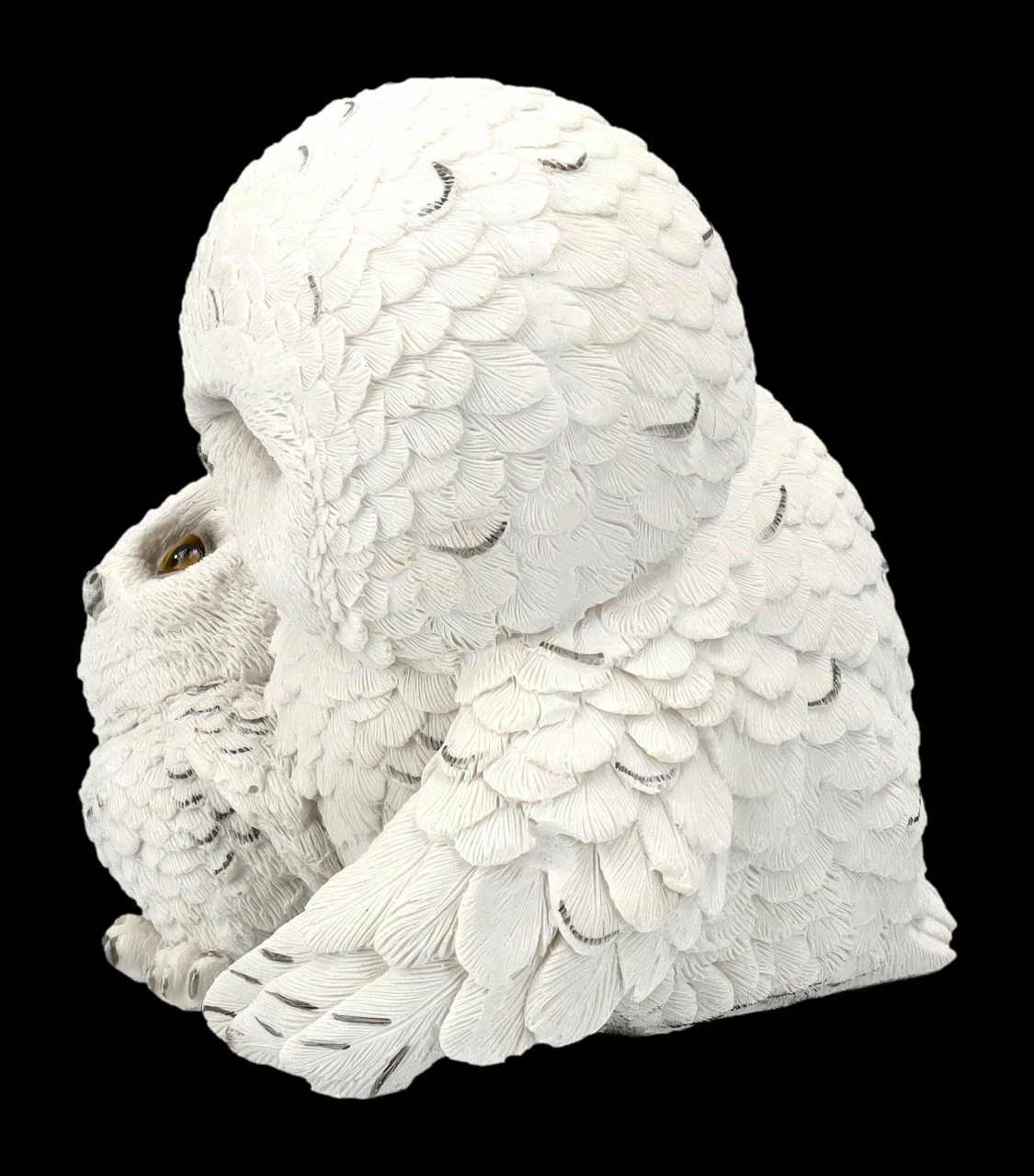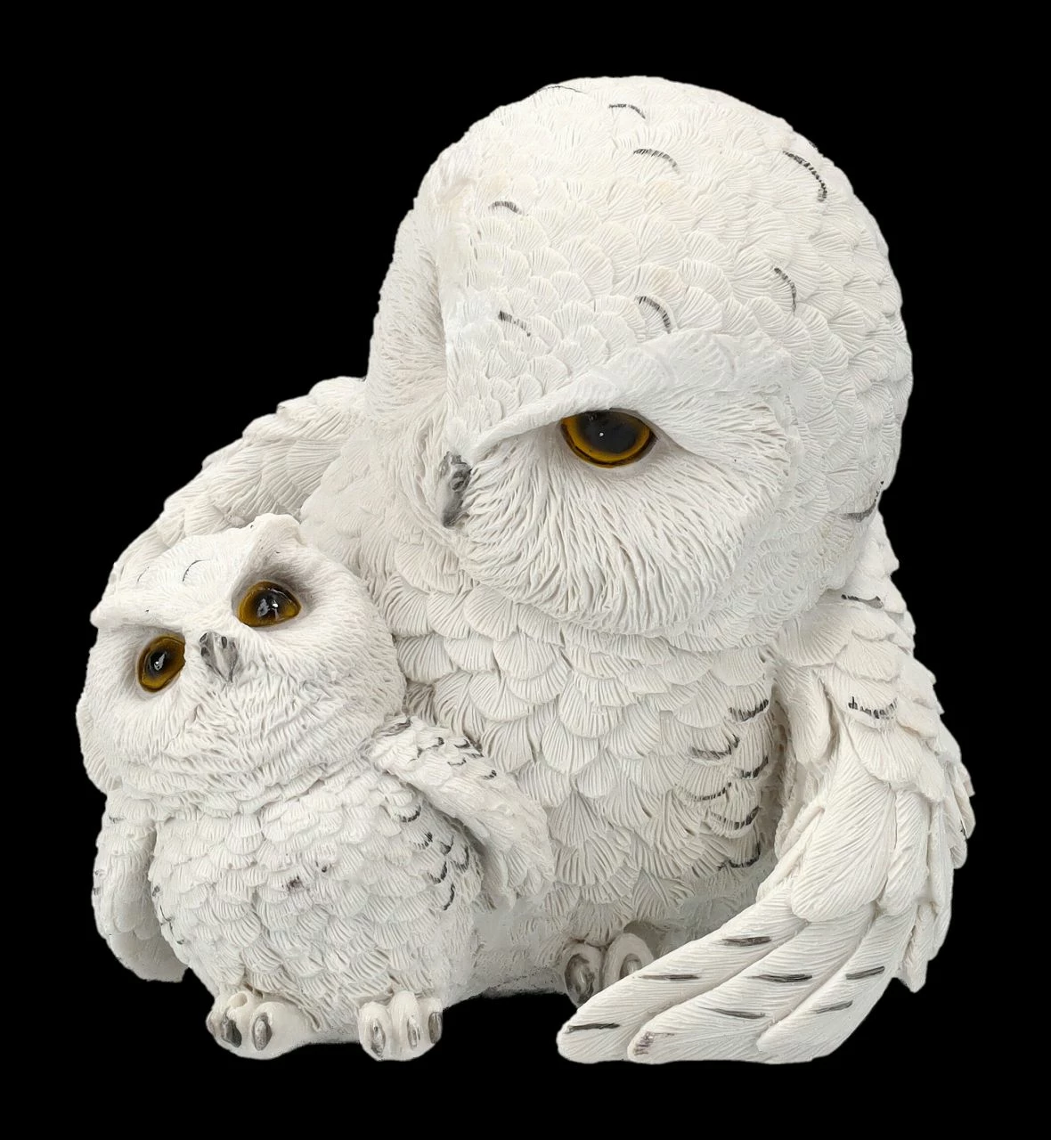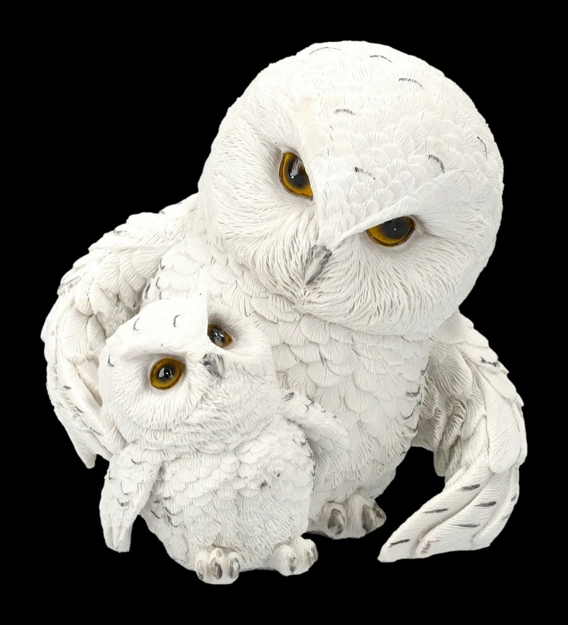 ‚Wenn du das nächste Mal Flugübungen machst, sag mir vorher Bescheid‘, besorgt schaut die Muttereule ihr Junges an. Sind die beiden nicht süß? Die 13,5 cm hohen, 12,5 cm breiten und 12 cm tiefen Schneeeulen wurden liebevoll aus handbemaltem Kunststein (Polyresin) gefertigt. Feathered Guide ist auch ein niedliches Geschenk nicht nur für alle, die Eulen lieben.