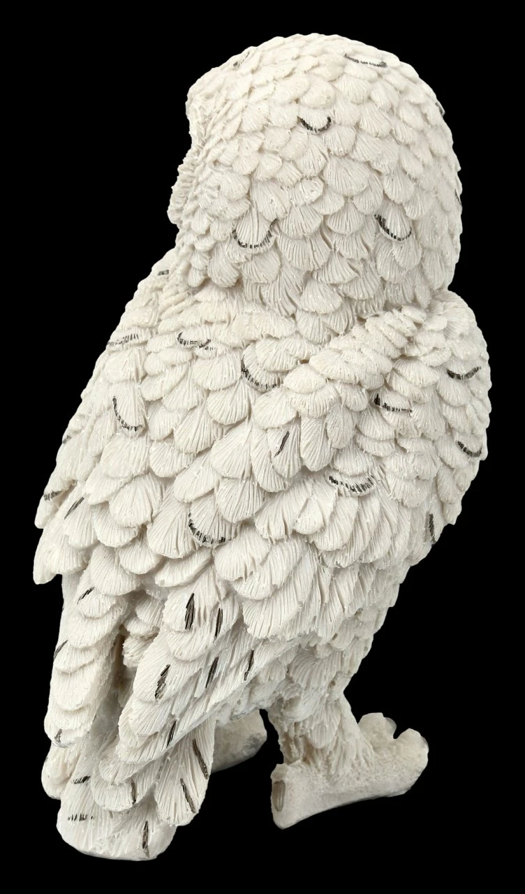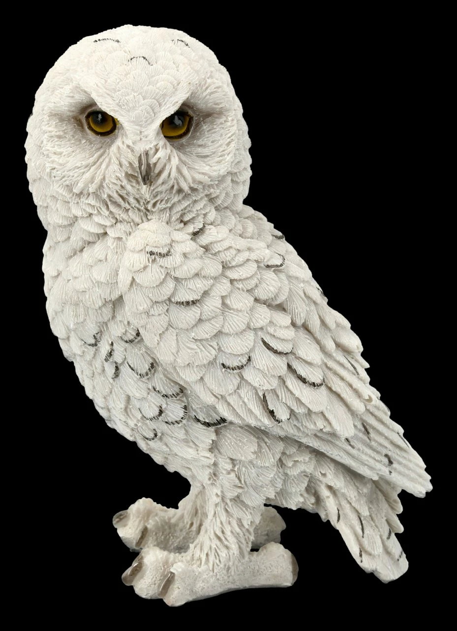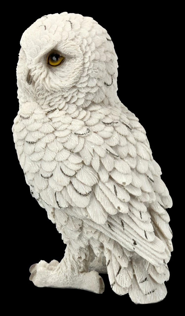 Hat sie etwas gehört? Aufmerksam schaut die wunderschöne Schneeeule Snowy Watch mit ihren großen leuchtenden Augen um sich. Die schöne Schneeeulen Figur ist mit vielen Details aus sorgfältig handbemaltem Kunststein (Polyresin) gefertigt. Sie ist 13 cm hoch, 9,5 cm breit und 7,5 cm tief und eine wunderbare Deko und Geschenk für jeden Eulen Freund.