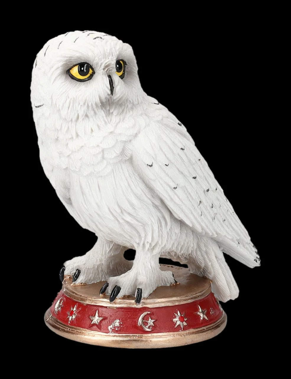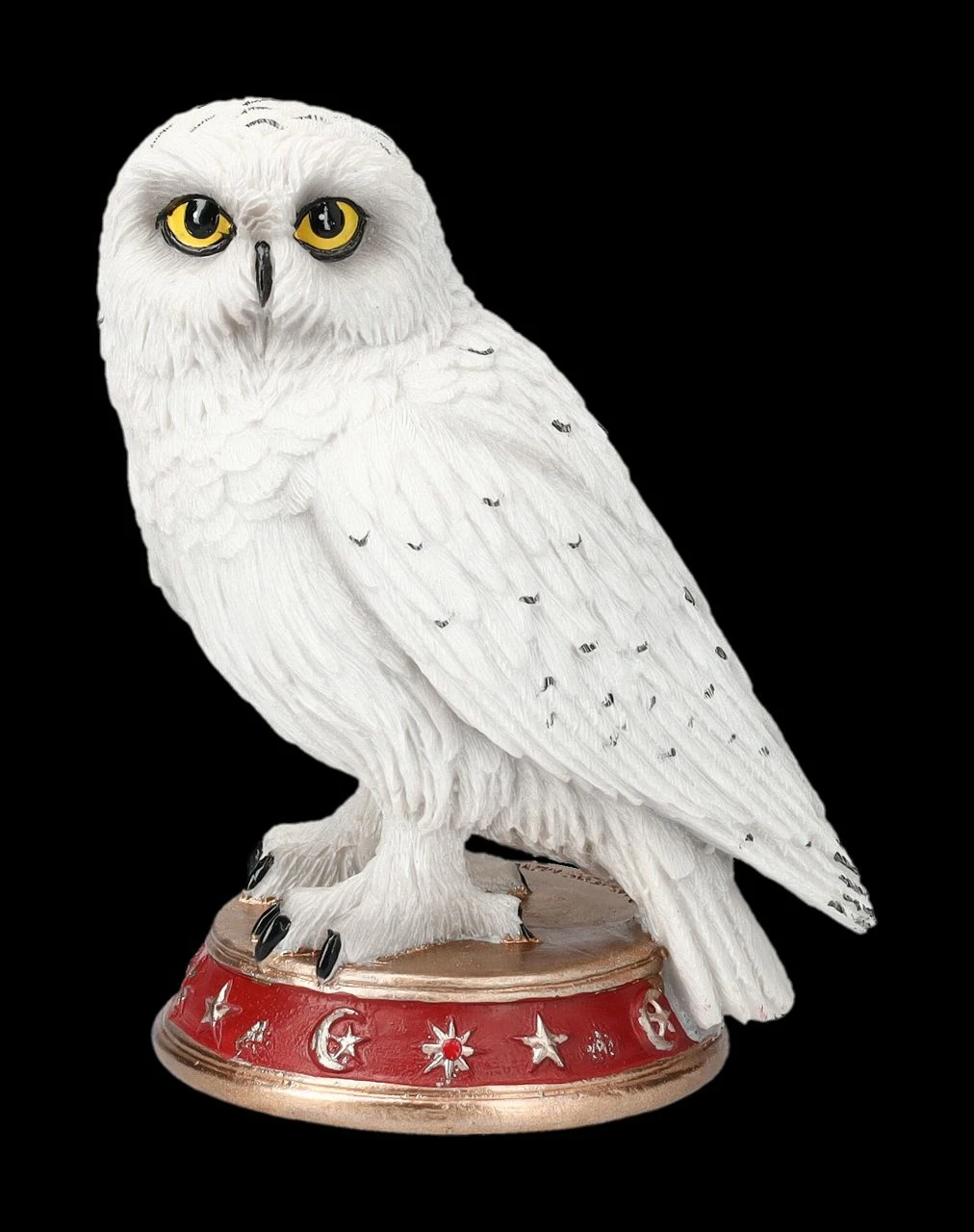 Hat der berühmte Zauberer seiner langjährigen Gefährtin ein Denkmal gesetzt? Aber vielleicht erwacht die kleine weiße Schneeeule in bestimmten Nächten wieder zum Leben und erhebt sich von dem roten, mit magischen Zeichen verzierten Podest. Die 10 cm hohe, 8 cm breite und 6 cm tiefe weiße Eule des Zauberers wurde aus liebevoll handbemaltem Kunststein (Polyresin) gefertigt. Wizard’s Familiar ist auch ein fantastisches Geschenk für alle Eulen-Fans.