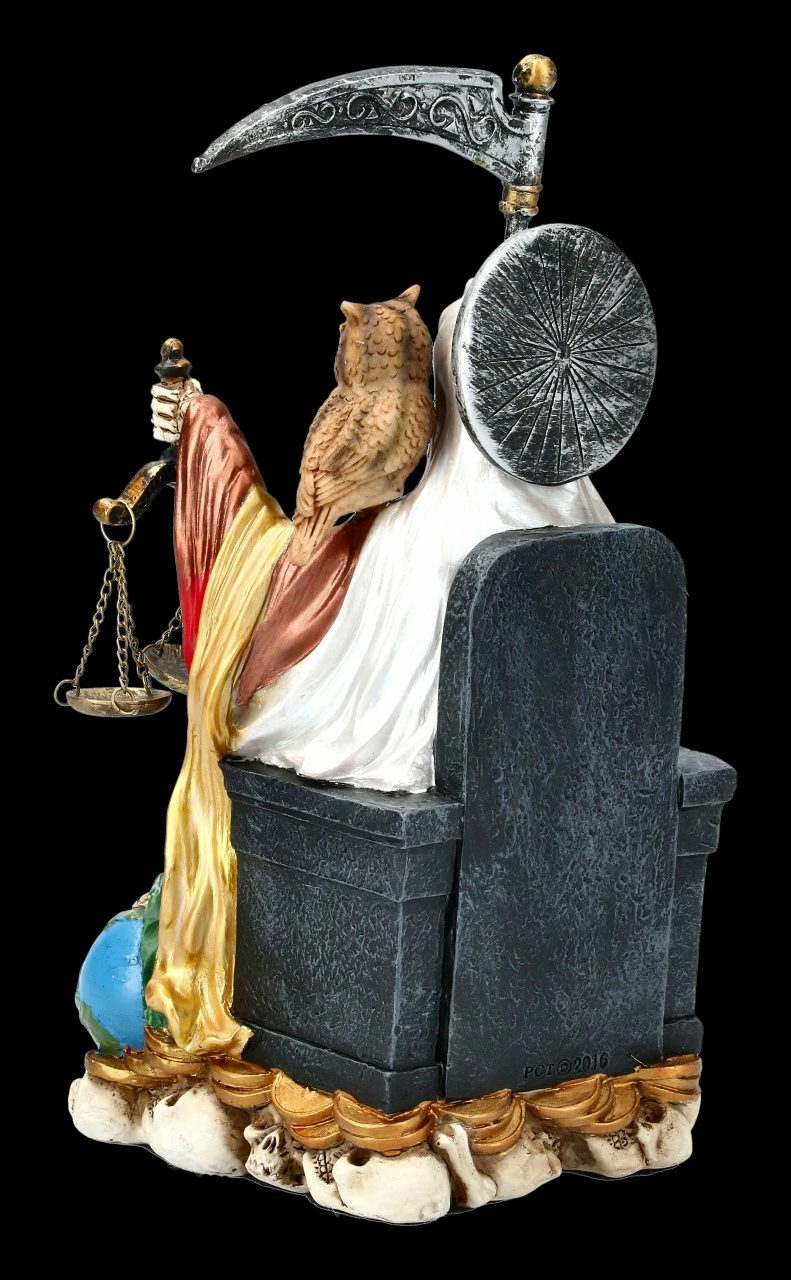 Der Heilige Tod wird als Santa Muerte vor allem in Mittel- und Lateinamerika gefeiert und um Liebe, Schutz und Glück angerufen. In dieser Nachbildung der Santa Muerte sitzt sie auf einen Thron. Diese in Regenbogenfarben handbemalte Santa Muerte ist ein schöner Schutzpatron für Zuhause.