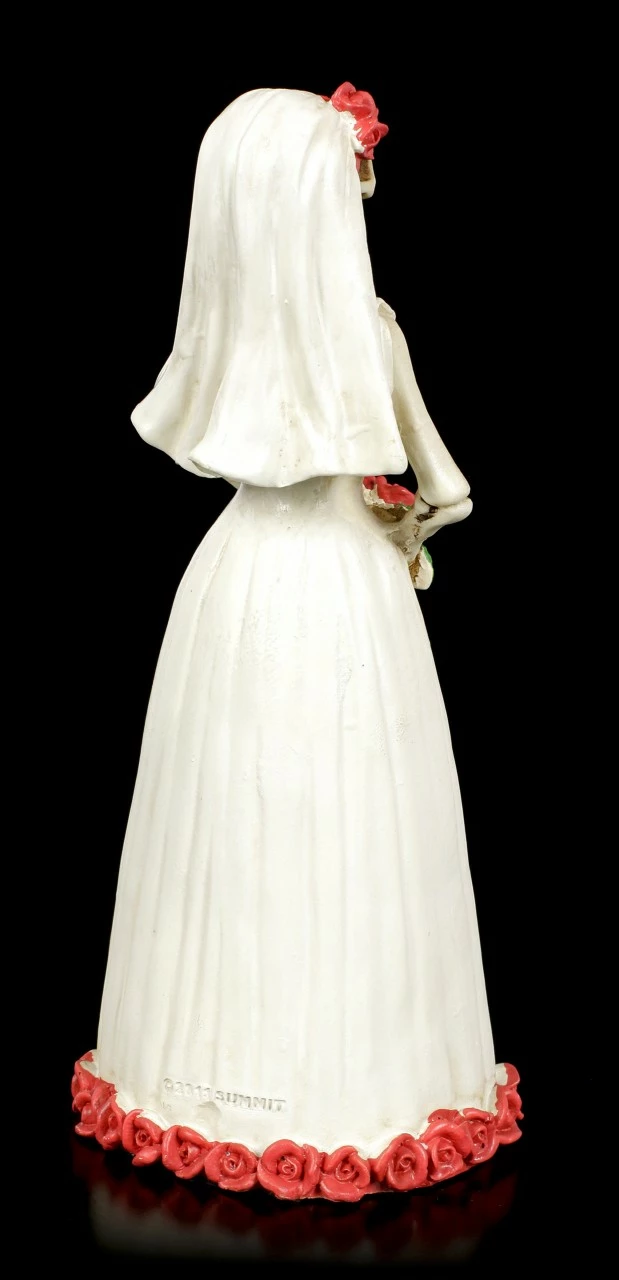 Liebe überlebt und übersteht bekanntermaßen auch den Tod. Glücklich wartet eine Skelettbraut in ihrem anmutigen Brautkleid mit roten Rosen in den Händen auf ihren geliebten Bräutigam. Sie freut sich darauf, das restliche untote Leben mit ihrer Seelenverwandtschaft zu verbringen. Die Skelett Figur ist aus hochwertigem Kunststein (Polyresin) gegossen und liebevoll handbemalt worden.