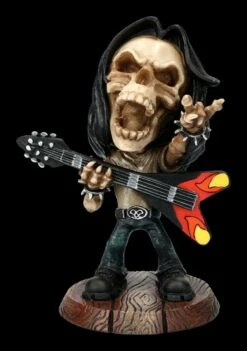 Dieser coole Skelett-Pocket Rocker aus der Künstlerwerkstatt von James Ryman geht voll ab. Nicht nur ein begnadeter Gitarrist war er anscheinend schon zu Lebzeiten, sondern auch ein begeisterter Sänger. Die 15,5 cm hohe, 10 cm breite und 9 cm tiefe Skelett Figur eines Gitarrist Pocket Rocker wurde detailreich aus handbemaltem Kunststein (Polyresin) geschaffen. Er ist nicht nur ein tolles Geschenk für James Ryman-Fans, sondern auch ein perfektes Band-Maskottchen und kommt inklusive eines passend bedruckten Geschenkkartons.