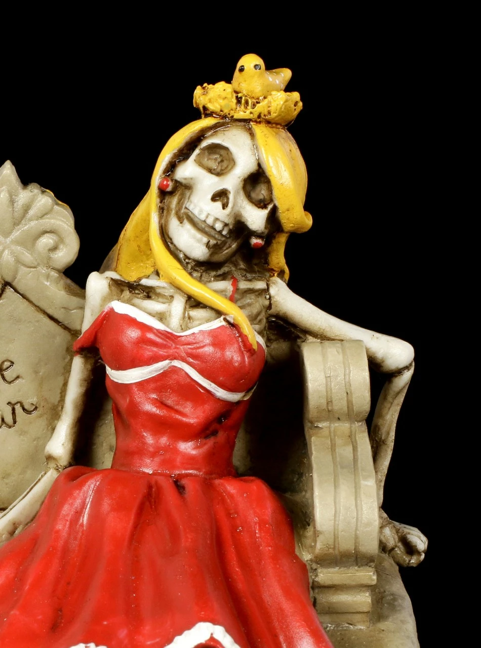 Tja, auch so kann Liebe aussehen, warten, warten warten…. Die junge hübsche Blondine hat wohl ein wenig zu lange gewartet. Die handbemalte Skelett Figur aus Kunststein (Polyresin) Waiting for the Perfect Man wird Sie begeistern. Es ist das perfekte Geschenk für einen Menschen, der Humor hat.