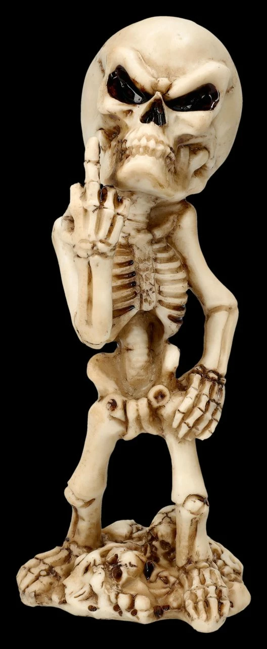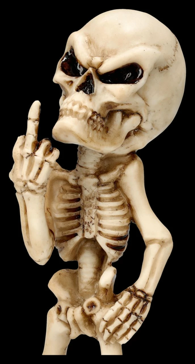 Einzigartige Skelett Figur mit provokanter Geste